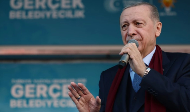 Cumhurbaşkanı Erdoğan, Balıkesir'de düzenlenen mitingde konuştu. Gündemine yerel seçimleri ve hayat pahalılığını alan Erdoğan, "Dünyanın başının belası olan enflasyon bizim de canımızı yakıyor. Amacımız Türkiye Yüzyılı rotamızı koruyarak bu fırtınalı küresel iklimden ülkemizi sağ selamet çıkarmaktır." dedi. Erdoğan ayrıca DEM Parti ile uzlaşı söylentileri olan CHP'ye yüklenerek, "Koskoca CHP'yi bölücü örgütün güdümündeki DEM'in ve marjinal örgütlerin oyuncağı haline dönüştürenler utansın." dedi.
