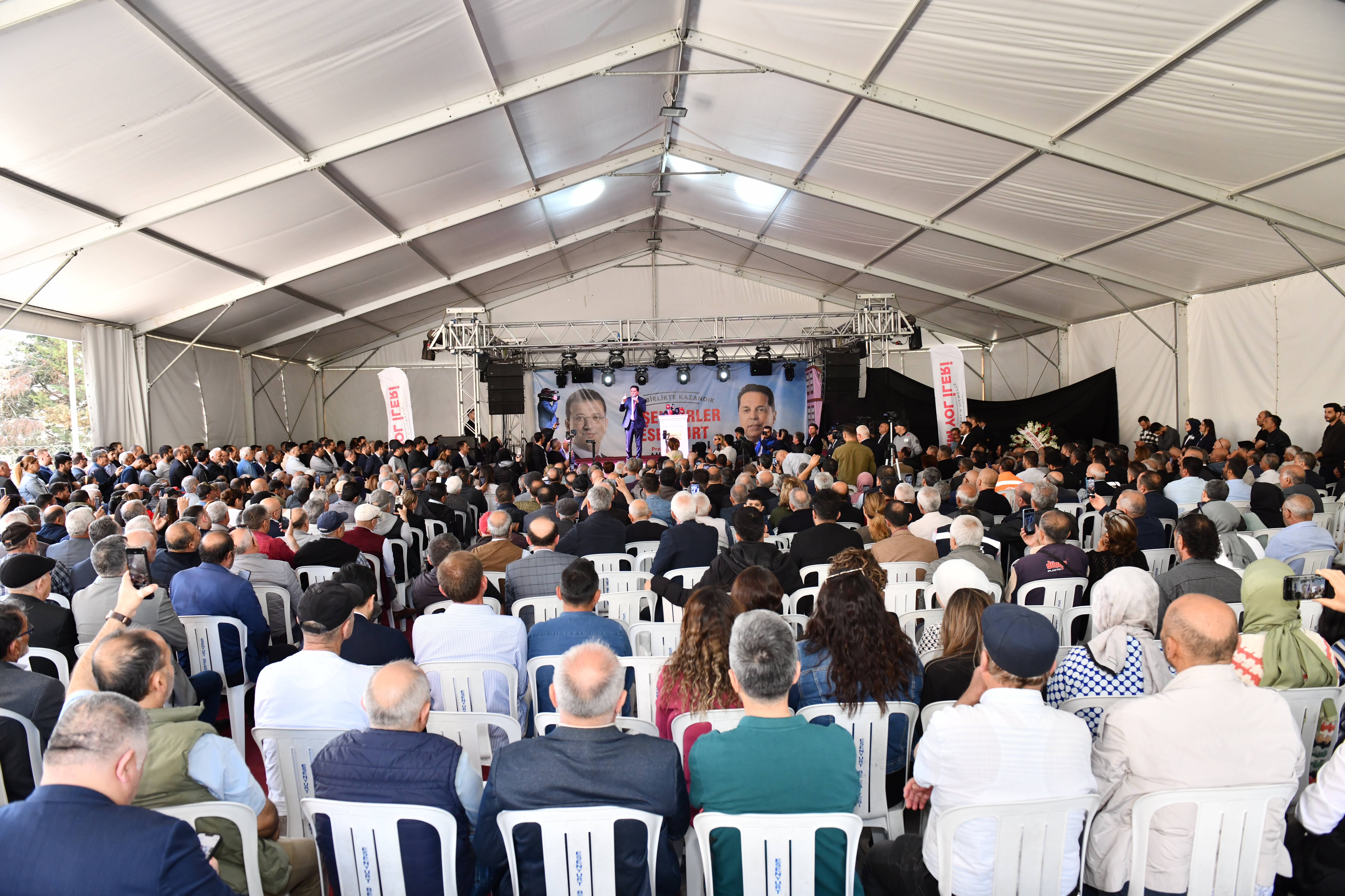 Seçimlerde kendisini destekleyen herkese teşekkür eden Başkan Özer, “Değerli kardeşlerim, ben CHP Esenyurt Belediye Başkanıyım ve öyle seçildim. Ama rozetimi çıkarıyorum. Masaya bırakıyorum. Bundan sonra herkesin belediye başkanı olacağım. Hepimiz çok çalıştık, ter döktük.Parti gençlik kollarımız, kadın kollarımız, örgütümüz gece gündüz demeden ter döktü. Bütün bu emekçi kardeşlerimize huzurunuzda teşekkür ediyorum. Ayrıca DEM Parti de bizi destekledi. Onlara da teşekkür ediyorum. Yaptığımız analizlere göre başka partilerden de oy aldık. Özellikle Ak Parti seçmeninden de makul sayıda oy aldık.Biz artık yükselişteyiz, kimse bunu düşüremez. Sizden bir isteğim var; artık bu yolda yürürken sevgiyi temel düstur eyleyelim. Doğulusuyla, batılısıyla, kuzeylisiyle, güneylisiyle bu sevgiyi burada harmanlayacağım” dedi.“Seçimi halk kazandı”