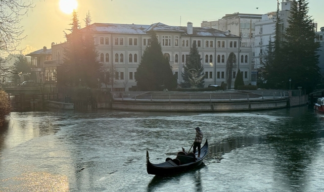 Eskişehir'de Porsuk Çayı'nın yüzeyi buz tuttu!