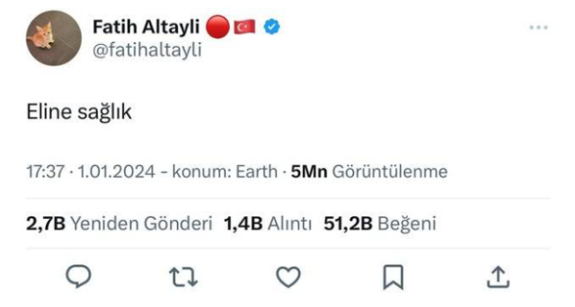 İstanbul Cumhuriyet Başsavcılığı, Altaylı hakkında, 1 Ocak'ta İstanbul'da düzenlenen "Şehitlerimize Rahmet, Filistin'e Destek, İsrail'e Lanet" yürüyüşünün ardından İsmail Aydemir'e yumruklu saldırıda bulunan zanlı E.A'ya ilişkin sosyal medya hesabından yaptığı "Eline sağlık" paylaşımıyla ilgili "suçu ve suçluyu övme" suçundan resen soruşturma başlattı.