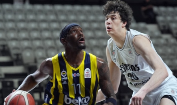 Türkiye Sigorta Basketbol Süper Ligi play-off yarı final serisi üçüncü maçında Fenerbahçe Beko, deplasmanda Beşiktaş Emlakjet'i 86-77 mağlup etti.Bu sonuçla seriyi 3-0 kazanan sarı-lacivertli takım, finale yükseldi. Fenerbahçe, play-off final serisinde Anadolu Efes'e karşı şampiyonluk mücadelesi verecek.Beşiktaş'ın cezası nedeniyle seyircisiz oynanan karşılaşmanın ilk bölümünde pota altını etkili kullanan Fenerbahçe Beko, 5. dakikada 9 sayılık fark yakaladı: 5-14. Needham'ın skorer oyunuyla toparlanan Beşiktaş Emlakjet, 8. dakikada farkı 4 sayıya indirdi: 14-18. Kalan sürede iki takım da karşılıklı basketler kaydetti ve Fenerbahçe ilk periyodu 23-20 önde tamamladı.İkinci çeyreğin başında Kerem Kuthan Konan ile üst üste basketler bulan Beşiktaş, 12. dakikada farkı 1'e indirdi: 25-26. Oyun üstünlüğünü yeniden ele geçiren Fenerbahçe Beko, 14. dakikada Hayes-Davis'in dış atışıyla farkı çift hanelere çıkardı: 25-35. Kalan dakikalarda Beşiktaş, pota altından kaydettiği basketlerle farkı 4 sayıya kadar indirmesine rağmen Fenerbahçe Beko, soyunma odasına 47-41 üstün gitti.Üçüncü periyot karşılık sayılarla başladı. Fenerbahçe'nin üst üste yaptığı hataları iyi değerlendiren Beşiktaş Emlakjet, 28. dakikada Simonovic'in hızlı hücumdan kaydettiği basketle karşılaşmada ilk kez öne geçti: 60-58. Karadağlı oyuncuyla pota altını etkili kullanmaya devam eden siyah-beyazlılar, dördüncü çeyreğe 65-62 önde girdi.Son çeyreğe iyi başlayan Beşiktaş Emlakjet, 31. dakikada farkı 8'e çıkardı: 70-62. Daha sonra üst üste hücumlardan boş dönen ev sahibi takım karşısında Sertaç Şanlı ile etkili olan Fenerbahçe Beko, 36. dakikada skor üstünlüğünü yeniden ele geçirdi: 75-76. Kalan bölümde oyuna ağırlığını koyan sarı-lacivertli takım, müsabakadan 86-77 galip ayrıldı.Seriyi 3-0 kazanan Fenerbahçe Beko, adını finale yazdırdı. Sarı-lacivertli ekip, play-off final serisinde Anadolu Efes ile karşı karşıya gelecek. Dört galibiyete ulaşan takım, Basketbol Süper Ligi'nde 2023-2024 sezonunun şampiyonu olacak.Salon: BJK EmlakjetHakemler: Emin Moğulkoç, Mehmet Serdar Ünal, Tolga AkkuşoğluBeşiktaş Emlakjet: Needham 19, Mitchell 1, Mathews 16, Allman 2, Simonovic 21, Yiğit Arslan 5, Berkan Durmaz, Kerem Kuthan Konan 9, Samet Yiğitoğlu 4Fenerbahçe Beko: Calathes 14, Wilbekin 4, Pierre 12, Hayes-Davis 21, Sertaç Şanlı 17, Şehmus Hazer 2, Metecan Birsen, Papagiannis 7, Melih Mahmutoğlu 5, Tarık Biberovic 41. Periyot: 20-23Devre: 41-473. Periyot: 65-62