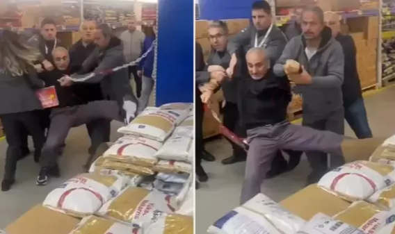 İzmir'de bir zincir markete giren vatandaş fiyatları görünce cinnet geçirdi. "Her şey o kadar pahalı ki geçinemiyoruz" diyen şahıs, markettekiler tarafından kollarından tutulup sürüklenerek marketten çıkarıldı. O anlar cep telefonu kamerasına yansıdı.