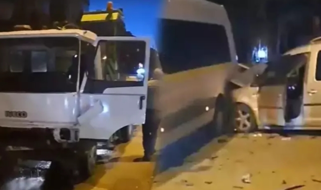 Freni patlayan kamyonet 10 araca çarptı