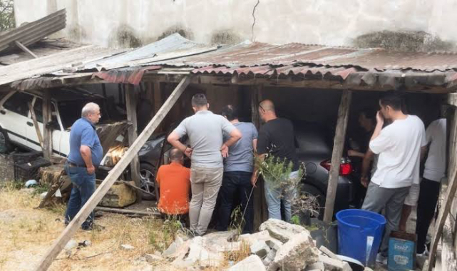 Garajın kapısını kırarak otomobile çarptı