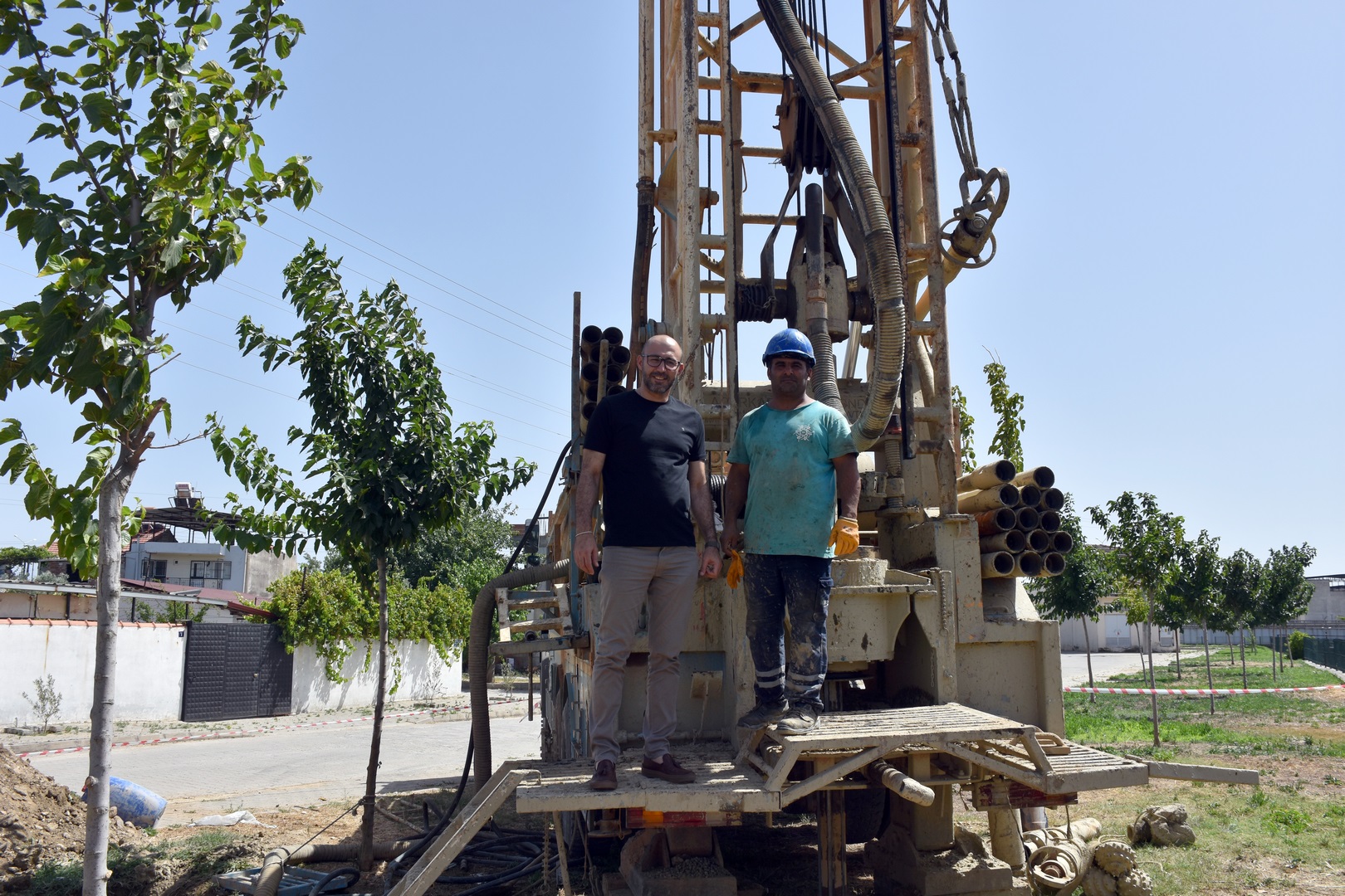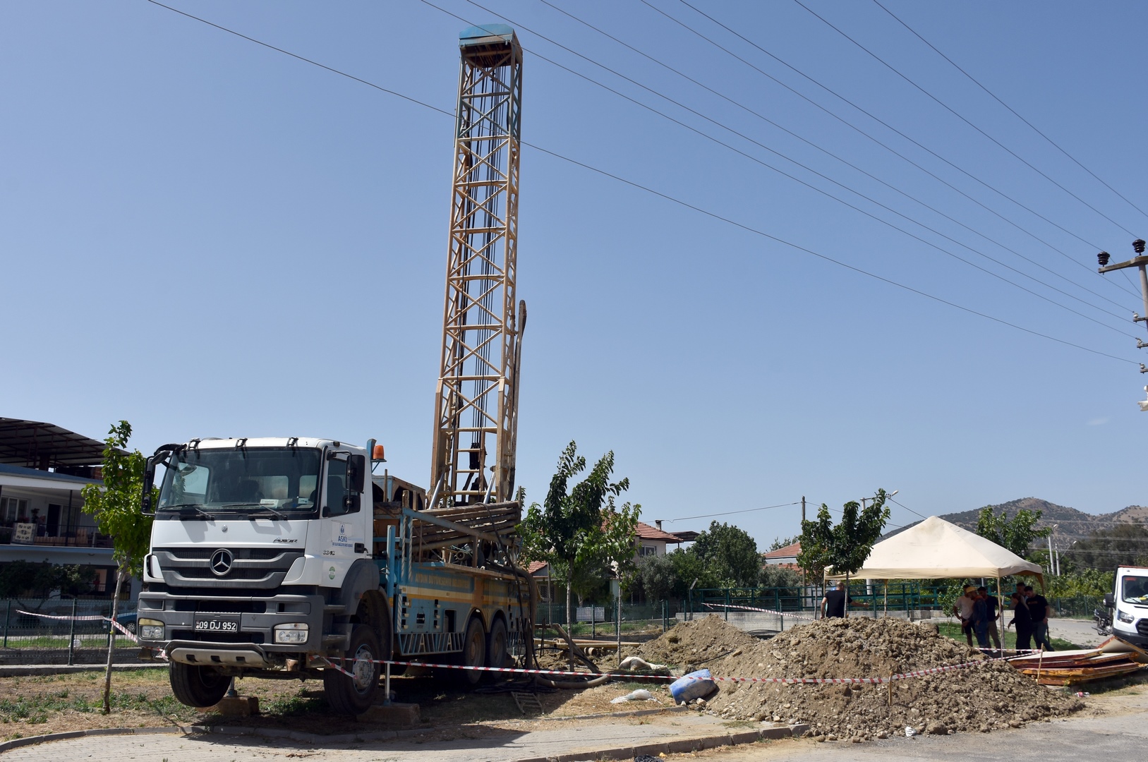 Germencik Belediye Başkanı Burak Zencirci, ilçede sondaj çalışması yürüten ASKİ ekiplerinin çalışmasını yerinde inceledi.