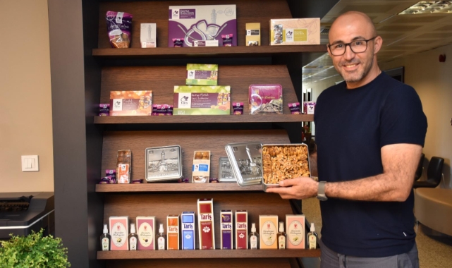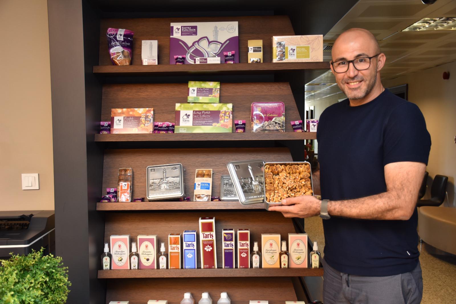 Germencik Belediye Başkanı Burak Zencirci Tariş ürünlerini belediyede sergiliyor.