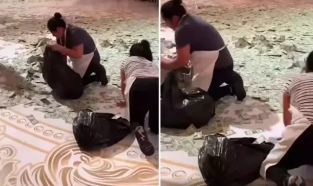 Dubai'de düzenlenen bir düğün merasiminde, damat ve gelin için saçılan dolarlar adeta pisti kapladı. Görevliler tarafından toplanan paralar, dört buçuk saat süren sayma işleminin ardından düğün sahiplerine teslim edildi.
