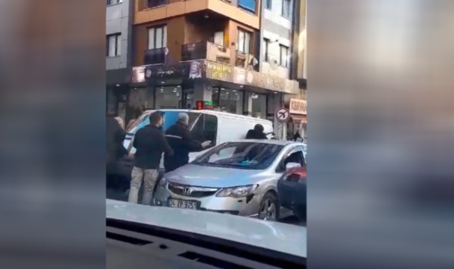 İstanbul Güngören'de, trafikte tartışan iki sürücüden biri diğerinin kafasına baltayla vurdu. Olayda yaralanan olmazken çevredekilerin müdahalesiyle sona eren kavganın ardından baltalı sürücü otomobiline binerek uzaklaştı. O anlar, cep telefonu kamerasına yansıdı.