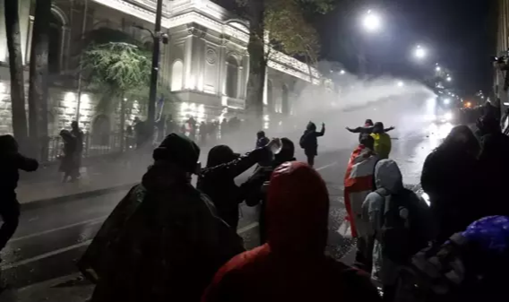 Gürcistan'ın başkent Tiflis'teki hükümet karşıtı gösteriler sürüyor. Parlamento binasının önünde gece saatlerinde toplanan binlerce kişi ile polis arasında birkaç kez tartışma yaşandı. Göstericiler polislere yönelik havai fişek ve farklı eşyalar atmaya başlayınca, olay yerine gelen Gürcistan İçişleri Bakanlığına bağlı güvenlik güçleri tazyikli su ve göz yaşartıcı gazla müdahale etti.Polisin müdahalesi sonucu parlamento binasından yaklaşık 300 metre geri çekilen göstericiler, Şota Rustaveli Caddesi'nde barikatlar kurmaya başladı. Çevredeki eşyaları ateşe veren göstericiler ile polis arasındaki arbede devam edince, birkaç kişi de gözaltına alındı. Öte yandan Batum kentinde de devam eden gösterilerde 9 kişinin gözaltına alındığı bildirildi.