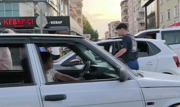 Bursa'nın İnegöl ilçesinde meydana gelen kazada 2 otomobil çarpıştı; 2 sürücü de yaralandı. Kazanın ardından aracında hasar olduğunu gören sürücünün diğer sürücüye tepki gösterdiği anlar amatör kameraya yansıdı.