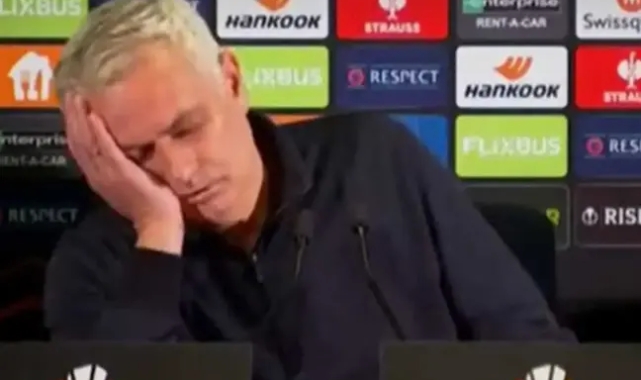 Fenerbahçe Teknik Direktörü Jose Mourinho, UEFA Avrupa Ligi'nde Rangers'a 3-1 mağlup oldukları karşılaşmanın ardından düzenlenen basın toplantısında kendisine yönetilen uzun soruya verdiği tepkiyle gündeme oturdu. Portekizli teknik adamın sorunun uzunluğundan sıkılmış hali ve horladığı anlar kameralara yansıdı.