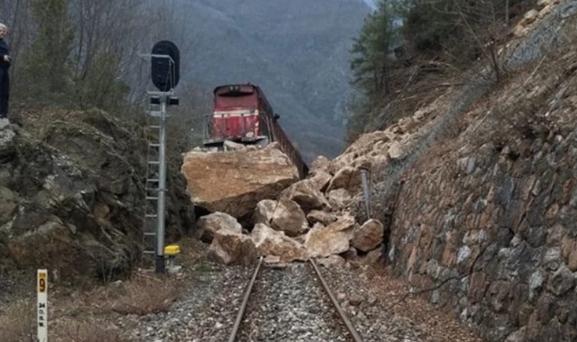 Karabük'ün Yenice ilçesi Balıkısık Köyü mevkisinde demiryoluna heyelan nedeniyle kaya parçaları düştü.Tren yolu kapanırken, Zonguldak'tan Karabük'e kömür taşıyan yük treni, raylara düşen kaya parçalarından dolayı raydan çıkarak durabildi.Kazada makinistler yaralanmazken, iki kent arasındaki demiryolu ulaşımı durduruldu.