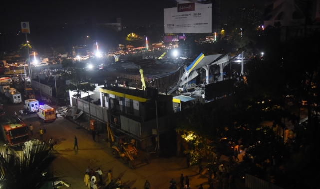 Hindistan'ın Mumbai kentinde etkili olan toz fırtınası nedeniyle düşen reklam panosunun altında kalan 8 kişi yaşamını yitirdi, 59 kişi yaralandı.Hindistan'ın NDTV kanalının haberine göre, Mumbai kentinin Ghatkopar bölgesinde fırtına nedeniyle bir akaryakıt istasyonunun üzerine reklam panosu düştü.Çok sayıda aracın üzerine düşen reklam panosunun altında kalan 8 kişi hayatını kaybetti, 59 kişi yaralandı.Ulusal Afet Müdahale Gücü (NDRF), enkaz altında kaldığı tahmin edilen 20 kişi için arama kurtarma çalışmalarının sürdüğünü açıkladı.Maharaştra eyaletinin Başbakanı Eknath Shinde, yaptığı açıklamada, olayda ölenlerin ailelerine maddi yardım sağlanacağını duyurdu.Olaya ilişkin soruşturma başlatıldı.Toz fırtınasının etkisi altındaki Mumbai'de düşük görüş mesafesi nedeniyle uçuşlarda aksamalar yaşanmış ve trafik tıkanmıştı. Kaynak:BirGün