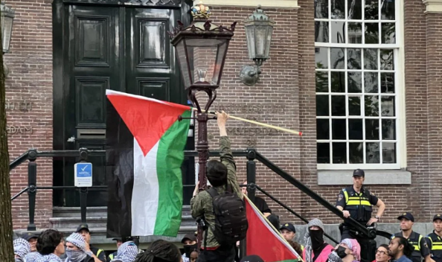 Hollanda üniversitelerinde Filistin destek gösterileri yeniden patlak verdi. Öğrenciler, üniversite yönetimlerinin İsrailli kurumlarla işbirliğini protesto ederek Filistin'e destek gösterilerine yeniden başladı. Sokaklarda "Siyonizm düşmeli" ve "1948'den bu yana İsrail ırkçı bir devlet" sloganları yükseldi...