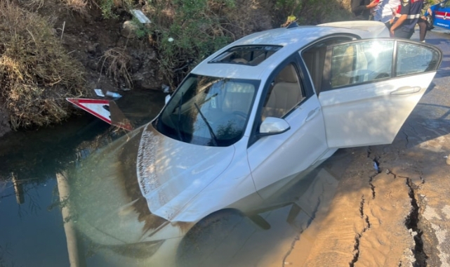 Muğla'nın Bodrum ilçesinde patlayan içme suyu isale hattının oluşturduğu çukura düşen otomobil, ekiplerin çalışmasıyla çıkarıldı.
