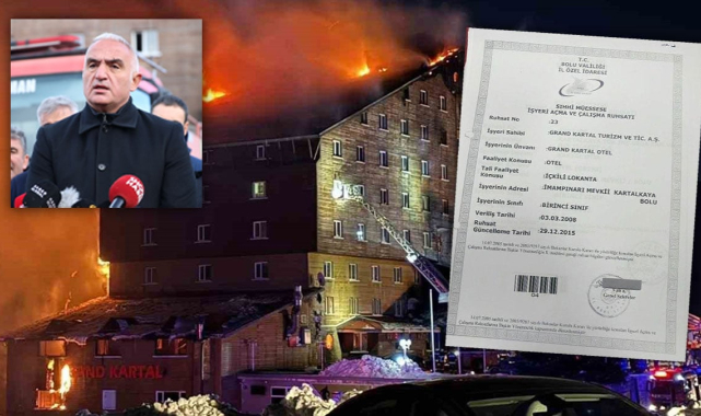 Kartalkaya'da 78 can kaybına neden olan yangınla ilgili yeni bir gelişme yaşandı. Dün Bakan Ersoy’un sorumlu tuttuğu Bolu İl Özel İdaresi’nin 2015 yılında Grand Kartal Otel’e verdiği işyeri açma ruhsatı belgesi ortaya çıktı. Ancak, bu ruhsatın içinde yangın güvenliği belgesinin bulunup bulunmadığı halen belirsizliğini koruyor.