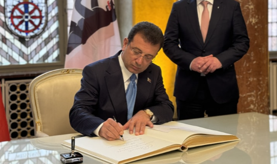 İstanbul Büyükşehir Belediye Başkanı Ekrem İmamoğlu, İstanbul'un kardeş şehri Berlin'in belediyesini ziyaret ederek 'Altın Defter' (Goldene Buch) olarak bilinen şehrin şeref defterini imzaladı.