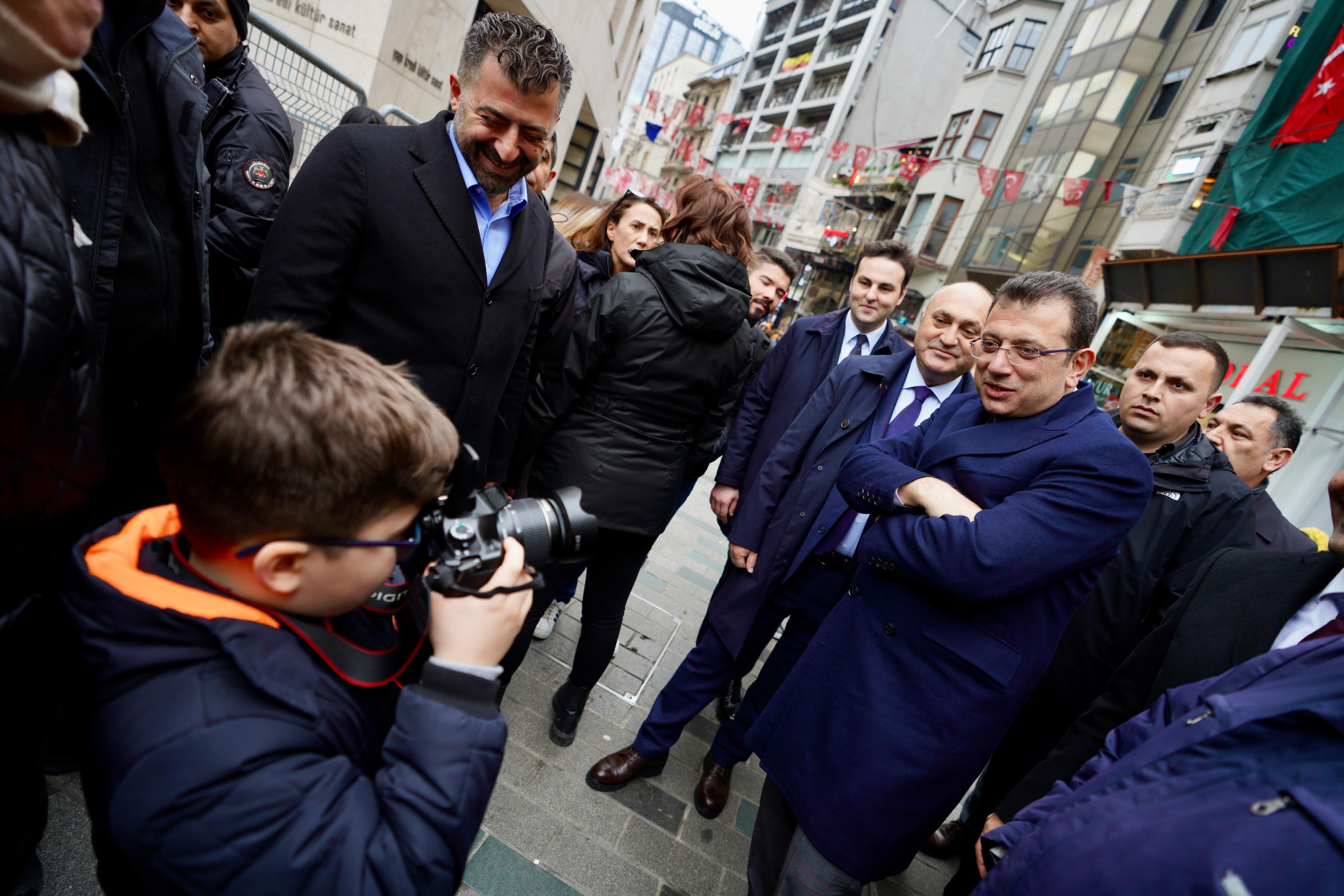 İBB Başkanı Ekrem İmamoğlu, CHP Beyoğlu Belediye Başkan adayı İnan Güney ile birlikte kısa bir ilçe turu yaptı. İmamoğlu’na, “Kocaeli’de doktorum. İkametgahımı almıyorum size oy vermek için” diyen de oldu, “Seçimi kazandığınızdan beri, zamanında topal ördek dediler size. ‘Seçilse bile topal ördek olacak’ dediler.Seçildiniz; bu kez, ‘Bir iş yapmıyor’ dediler. Fakat yaptınız. Ben evlendim, evlilik yardımı aldım. Fakat Beyoğlu Belediyesi’ne nikah ücreti ödedim, Büyükşehir Belediyesi yardım verdi. Ben eşime yüzüğü, Büyükşehir’den aldığım parayla aldım” diyen de. Bir grup genç de İmamoğlu’na, “Kütüphaneler için çok teşekkür ederiz.Üniversite sınavına sizin hazırladığınız kütüphanelerde çalıştık, kazandık. Vize ve finaller yine hep orada çalışıyoruz. İnşallah bizim gibi İstanbul yine kazanacak. Çok mutluyuz. Arkanızdayız. Allah yolunuzu açık etsin” sözleriyle teşekkürlerini sundu.BEYOĞLU / İSTANBUL İstanbul Büyükşehir Belediye (İBB) Başkanı Ekrem İmamoğlu, CHP Beyoğlu Belediye Başkan adayı İnan Günay ile birlikte Beyoğlu turu yaptı. İlk olarak Odakule’den Galatasaray’a kadar İstiklal Caddesi boyunca yürüyen İmamoğlu ve Güney, vatandaşların ilgi odağı oldu.Vatandaşlar, desteklerini ilettikleri İmamoğlu ile anı fotoğrafları çektirdi. Bir kadın vatandaşın, “Başkanım, deli oluyorum size. Allah seni başımızdan eksik etmesin” sözleri etmesi, İmamoğlu’nu ve etraftakileri gülümsetti.İmamoğlu’nun vatandaşa yanıtı, “Sağ olun. Harikasınız” oldu. İmamoğlu, “Kocaeli’de doktorum. İkametgahımı almıyorum size oy vermek için. Araba falan hiç mesele değil. İki defa daha olsa geleceğim oy vermeye” diyen vatandaşa ise, “Sağ olun hocam. Onur duydum” karşılığını verdi. SEVGİLİLER GÜNÜ MESAJINI İSTİKLAL CADDESİ’NDEN VERDİ: “SEÇİMLER,