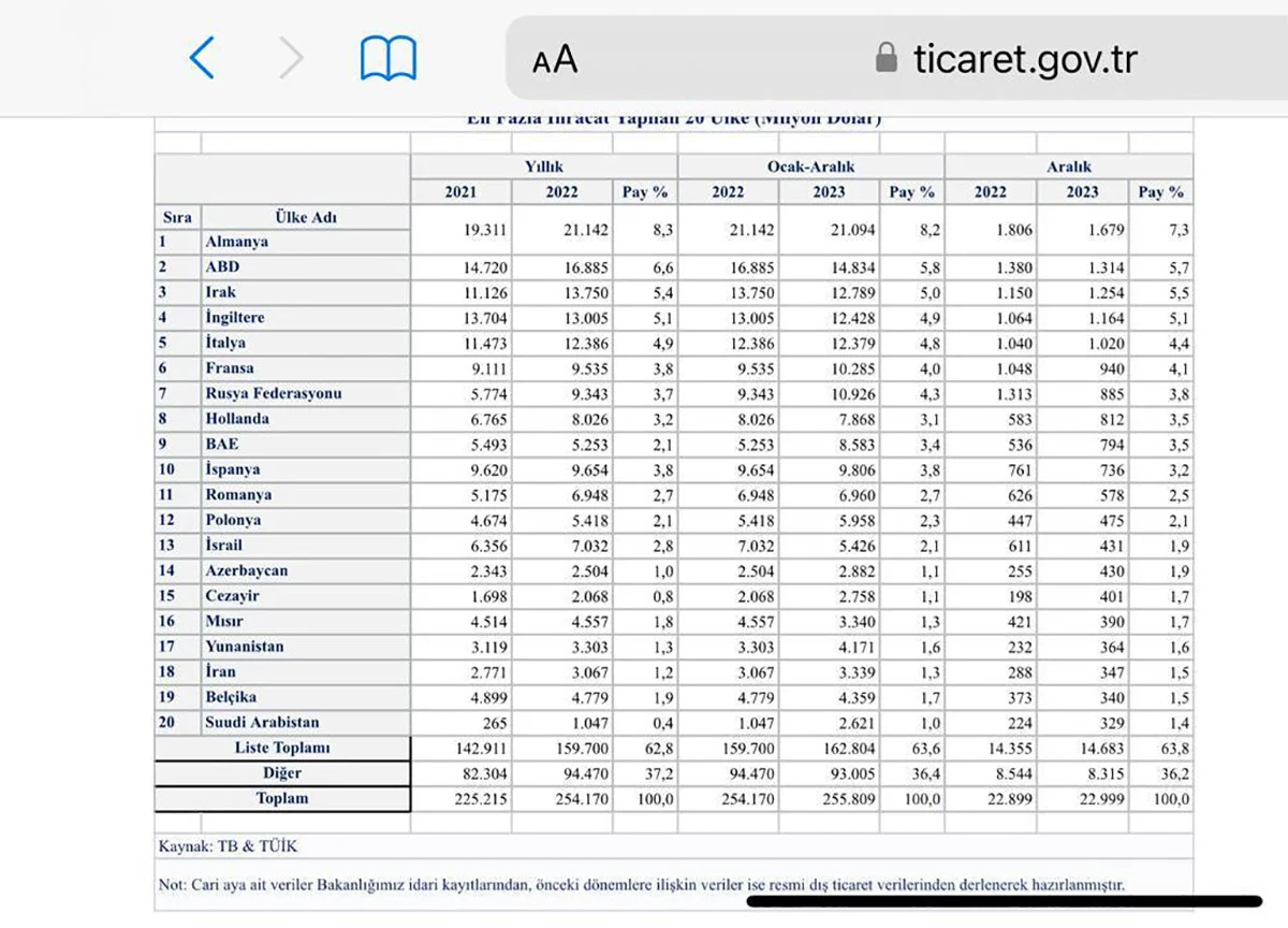 İsrail’e ihracatımız Aralık ayında da devam etti. Azerbaycan’a, İran’a ve Suudi Arabistan’a olan ihracatımızdan daha fazla olan bu ihracat ile İsrail ihracatımızda 13. sıraya yükseldi. pic.twitter.com/tHdkOKeyJt