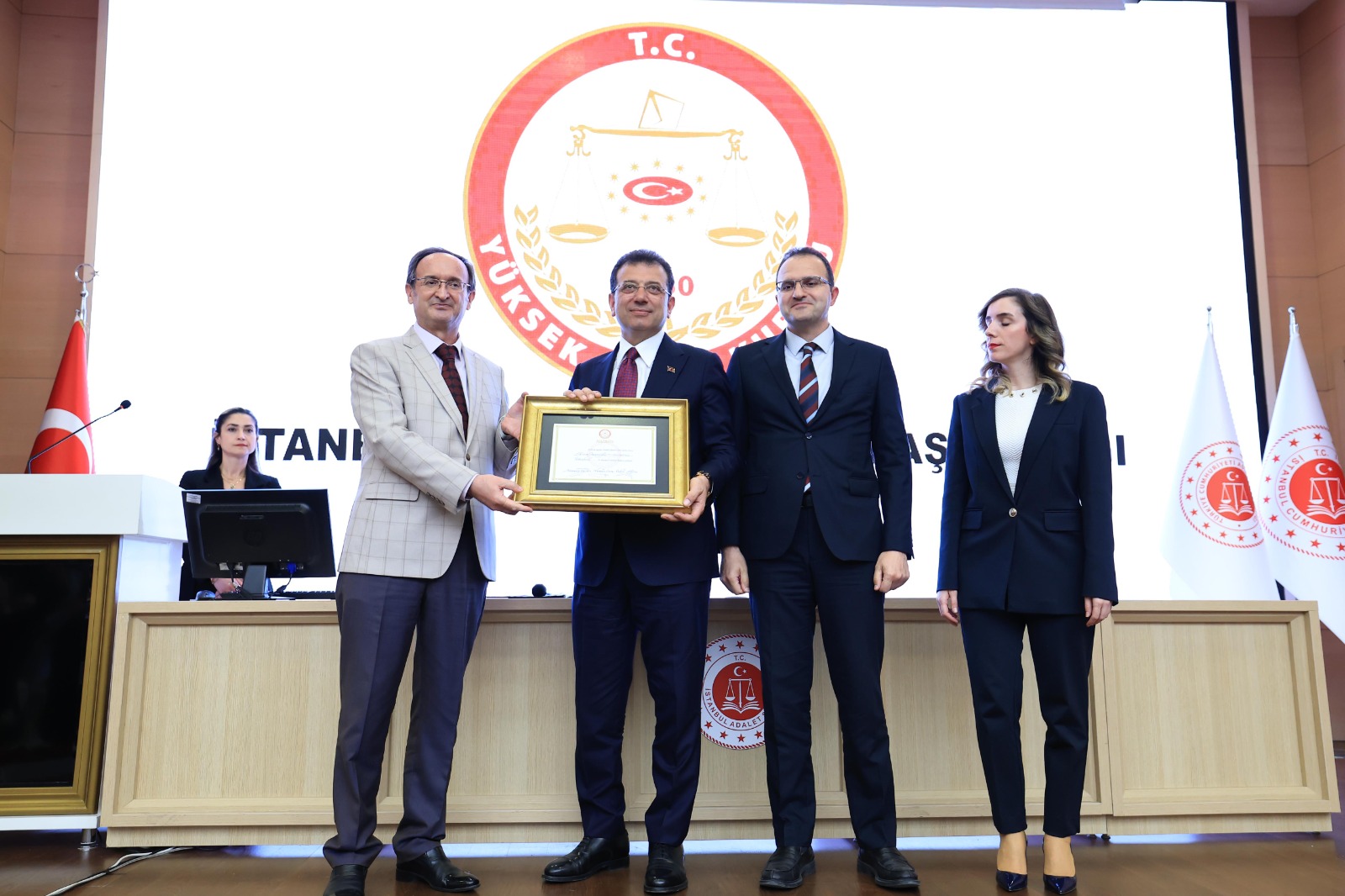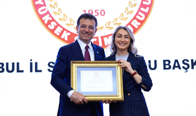 İBB Başkanı Ekrem İmamoğlu, mazbatasını İl Seçim Kurulu Başkanı Ramazan Seçkin’den aldı.