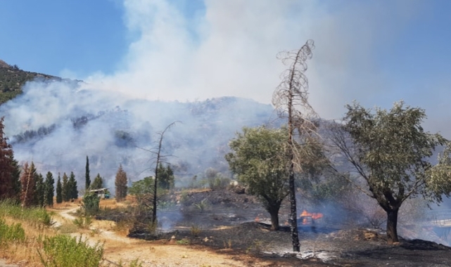 İzmir'in Gaziemir ve Buca ilçeleri arasında orman yangını çıktı. Yangın nedeniyle bölgede bulunan arı kovanları ile küçükbaş hayvan ağılları tahliye ediliyor.