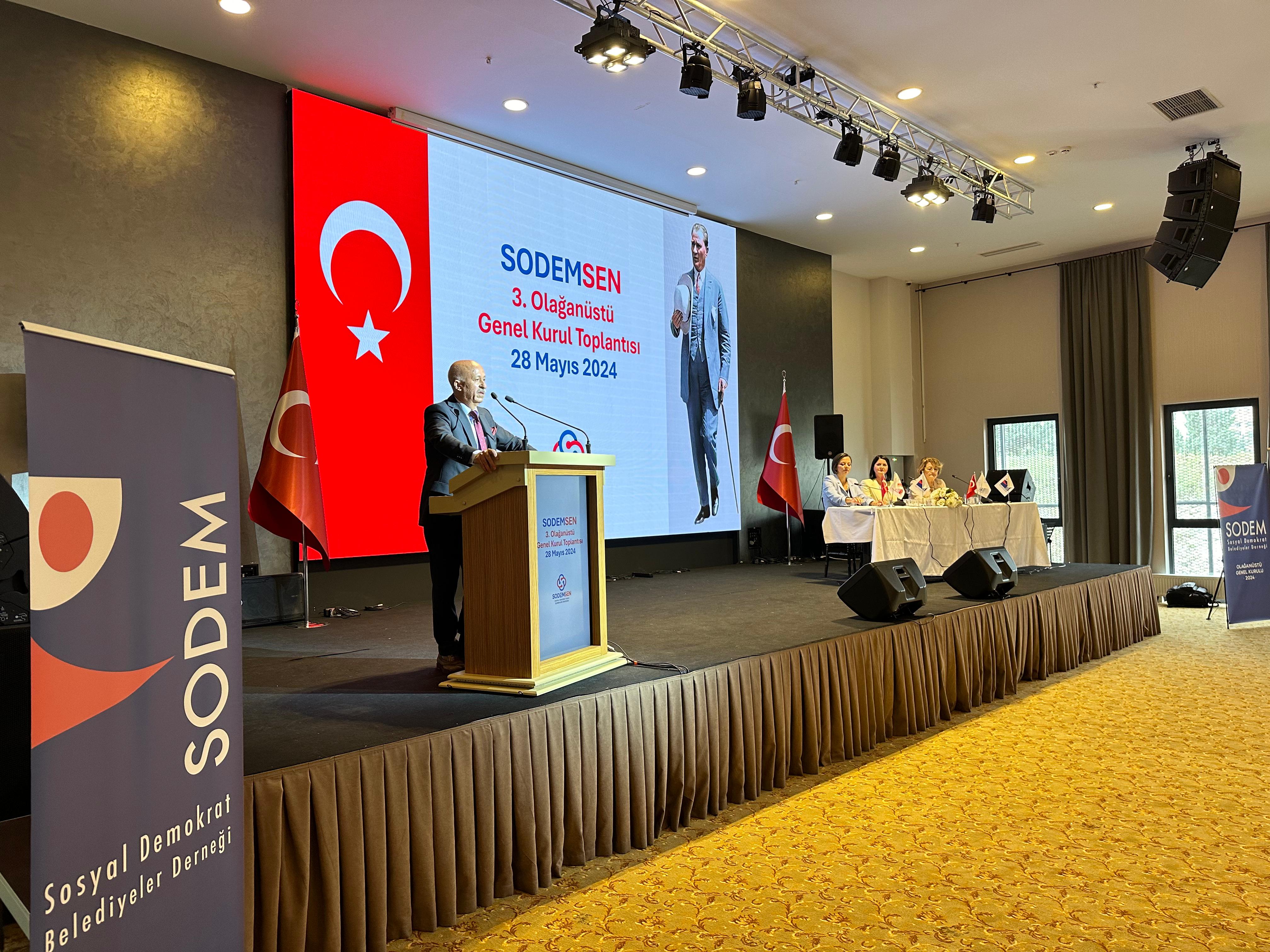 “SODEMSEN 3. Olağanüstü Genel Kurul Toplantısı’na katılarak oyumuzu kullandık.SODEMSEN 3. Olağanüstü Genel Kurulu’nun hayırlı uğurlu olmasını temenni ediyor, yeni görev alan tüm başkanlarımıza başarılar diliyor ve bizleri destekleyen tüm üyelerimize de teşekkür ediyorum. Bu dönem, sosyal demokrat belediyeler arasındaki işbirliği ile ortak projelerimizin artacağı yeni bir dönem olacak. Koordineli çalışmalarımız neticesinde kazanan kentlerimiz olacak. Kazanan sendikamız olacak. Kartal Belediye Başkanı olarak ilçemizi en güzel şekilde temsil etmeye ve sendikamız ile birlikte kıymetli işlere imza atmaya devam edeceğiz.” ifadelerini kullandı.Kartal Belediye Başkanı Gökhan Yüksel, Odunpazarı Belediye Başkanı Kazım Kurt, Çankaya Belediye Başkanı Hüseyin Can Güner, Kırıkkale Belediye Başkanı Ahmet Önal, Bilecik Belediye Başkanı Melek Mızrak Subaşı, Seyhan Belediye Başkanı Oya Tekin, Sarıyer Belediye Başkanı Mustafa Oktay Aksu, Bornova Belediye Başkanı Ömer Ekşi ve Gazipaşa Belediye Başkanı Mehmet Ali Yılmaz yeni yönetim kurulu üyeleri olarak seçildi.2011 yılında kurulan, 96 üyesi ile yaklaşık 23 milyon kişilik temsil kapasitesine sahip olan Sosyal Demokrat Belediyeler Derneği (SODEM)’nin, yine Çankaya Belediyesi Zübeyde Hanım Sosyal Tesisi’nde gerçekleştirdiği Olağanüstü Genel Kurul Toplantısı’na da katılan Kartal Belediye Başkanı Gökhan Yüksel bu programda da faaliyet raporu sunumunu yaptı.