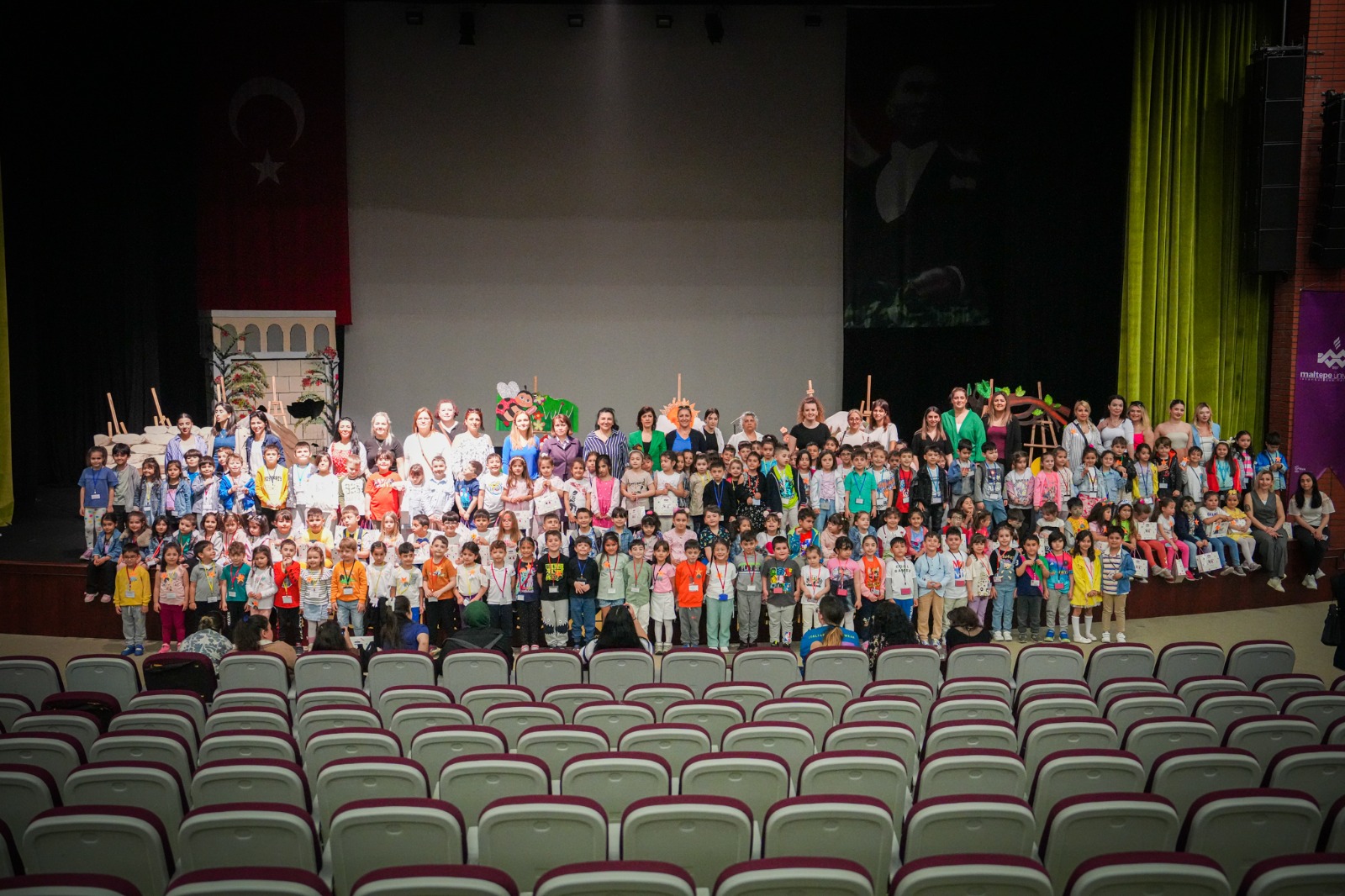 Kartal Belediyesi Kreş Müdürlüğü 6 yaş öğrencileri ve Kalben Derneği’nin (Korunma Altında Yetişen Gençler ve Koruyucu Aile Derneği) katılımı ile Marmara Eğitim Köyü Maltepe Üniversitesi’nde “23 Nisan Çocuk Şenliği” yapıldı. İstanbul Marmara Eğitim Kurumları Vakfı (İMEV), Maltepe Üniversitesi Meslek Yüksekokulu Çocuk Gelişimi Programı, Eğitim Fakültesi İngilizce Öğretmenliği ve Mediha Engizer Mesleki Teknik Anadolu Lisesi Çocuk Gelişimi öğrencilerinin hazırladığı tiyatro ve atölye çalışmalarının yer aldığı şenlikte, çocuklar yaratıcı karakterlerini öne çıkaran etkinliklerle keyifli bir gün geçirdi. Kartal Belediyesi Başkan Yardımcısı Dr. Dilek Kars ve Kartal Belediyesi Kreş Müdürü Hilal Kıraç’ın da katıldığı etkinlikte çocuklar Mediha Engizer Mesleki Teknik Anadolu Lisesi Çocuk Gelişimi öğrencilerinin hazırladığı ‘Nuh’un Gemisi’ isimli tiyatro oyununu izledi. Çocuklar daha sonra koşu parkurundaki etkinliklerin ardından, ‘Gezegenleri Tanıyalım’ gibi 14 farklı atölyede yaratıcı çalışmalar yaparak keyifli bir gün geçirdi.Çocuklarla gün boyu ilgilenen çocuk gelişimi eğitimi alan öğrenciler, Kartal Belediyesi kreş öğretmenleriyle sohbet ederek mezun olduktan sonraki iş hayatı hakkında bilgi alışverişinde bulundu.Çocuklarımızın Hafızalarında Güzel Hatıralar Oldu