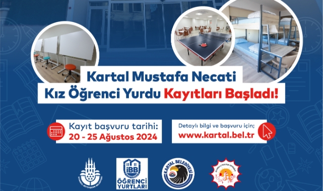 Kartal Belediyesi tarafından Türkiye Cumhuriyeti’nin 100. yılında üniversiteli kız öğrenciler düşünülerek büyük bir törenle hizmete açılan Mustafa Necati Yükseköğrenim Kız Öğrenci Yurdu için başvuru kayıtları alınmaya başlandı.Kartal Belediye Başkanı Gökhan Yüksel’in eğitime verdiği destek doğrultusunda, Cumhuriyetin 100. Yılında, Cumhuriyet kızlarına ithaf edilerek açılan ve üniversite eğitimini görmekte olan kız öğrenciler düşünülerek tam donanımlı bir şekilde hizmete sunulan Mustafa Necati Yükseköğrenim Kız Öğrenci Yurdu’nun, başvuruları 20-25 Ağustos 2024 tarihleri arasında gerçekleşecek.Kartal Belediyesi Mustafa Necati Yükseköğrenim Kız Öğrenci Yurdu için başvurular, https://bit.ly/KizOgrenciYurduOnKayit linki üzerinden yapılacak.Başvuru Şartları