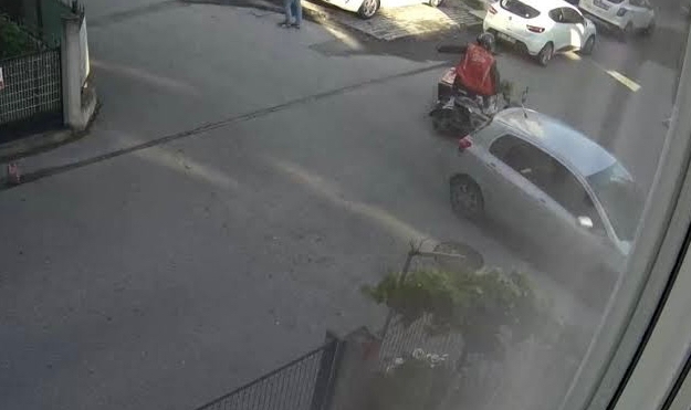 Kocaeli'nin Gebze ilçesinde meydana gelen kaza sonucunda, motosikletli sürücü ani refleksi sayesinde yara almadan kurtuldu. Kaza anı güvenlik kamerasına yansıdı.