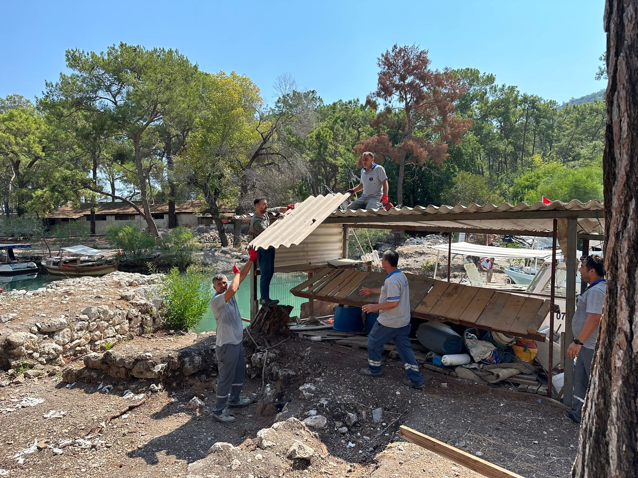 Kemer Belediyesi Zabıta Müdürlüğü ekipleri, sit alanı içerisinde yer alan Kemer Balıkçı Barınağı’nda izinsiz yapılan yapıları kaldırdı.