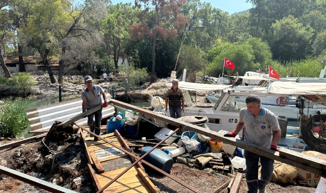 Kemer Balıkçı Barınağı'ndaki kaçak yapılar kaldırıldı