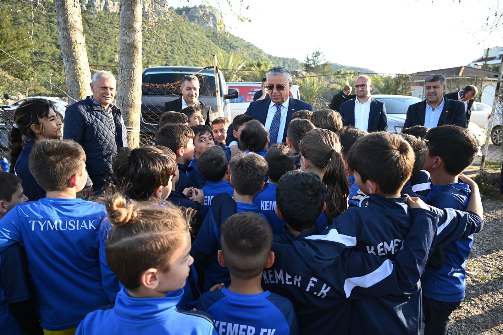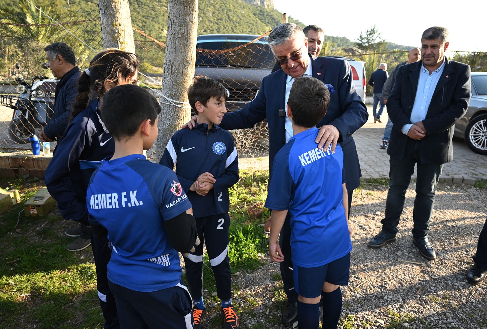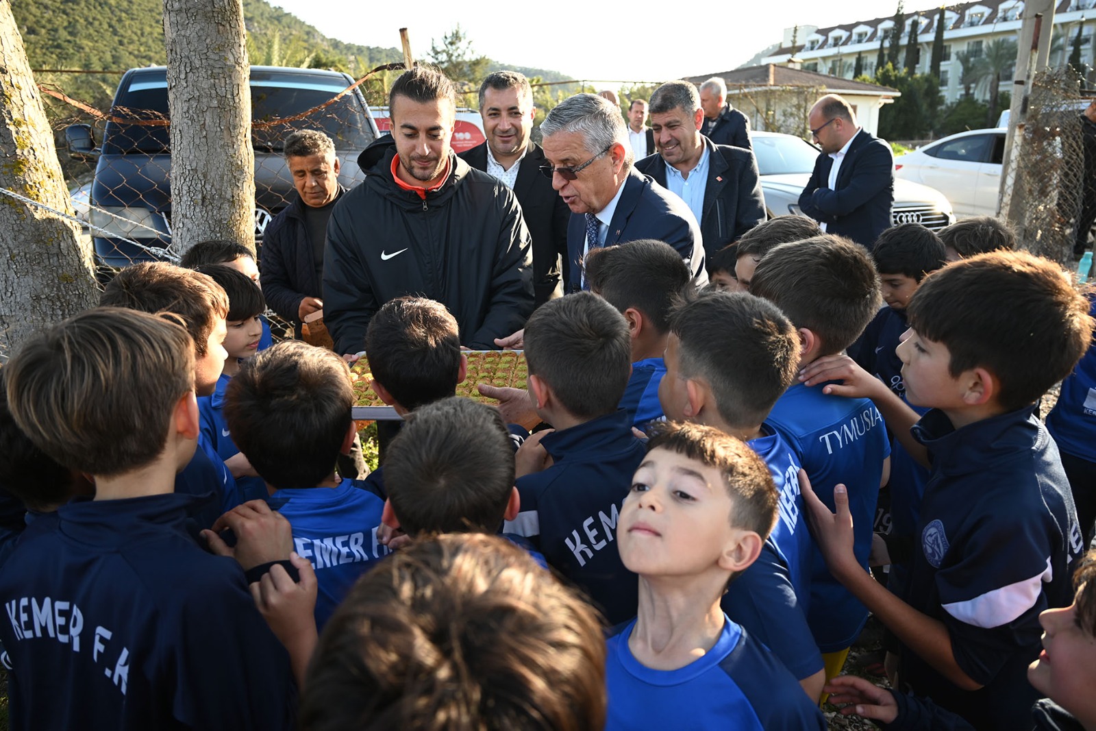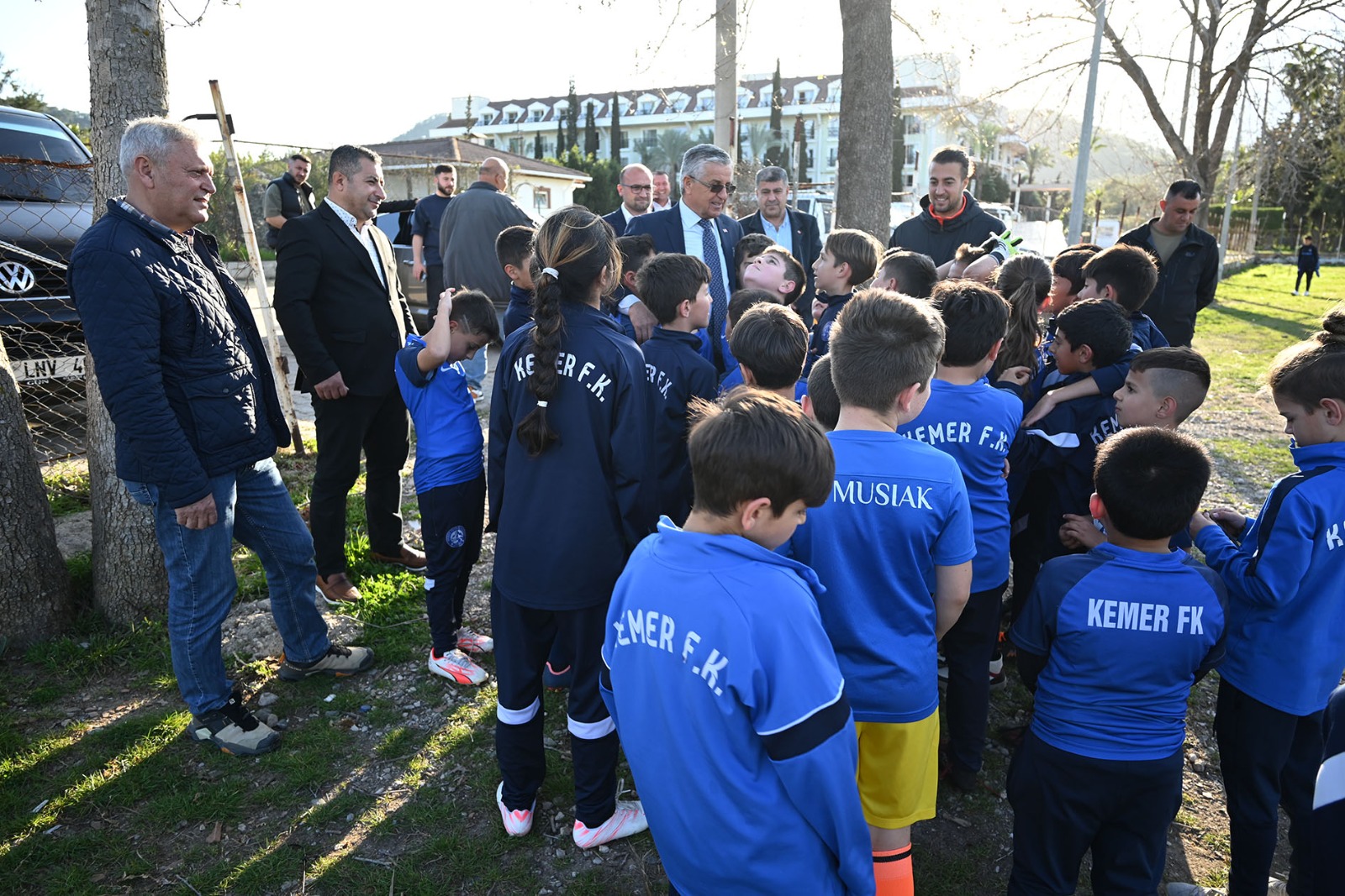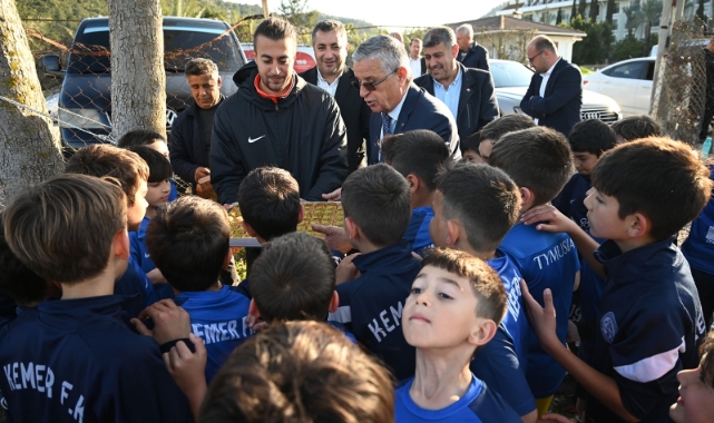 Kemer Belediye Başkanı Necati Topaloğlu, Başkan yardımcısı Emin Gül ile Kemer 2020 FK Spor Kulübü’nde futbol eğitimi alan minik sporcuları ziyaret etti