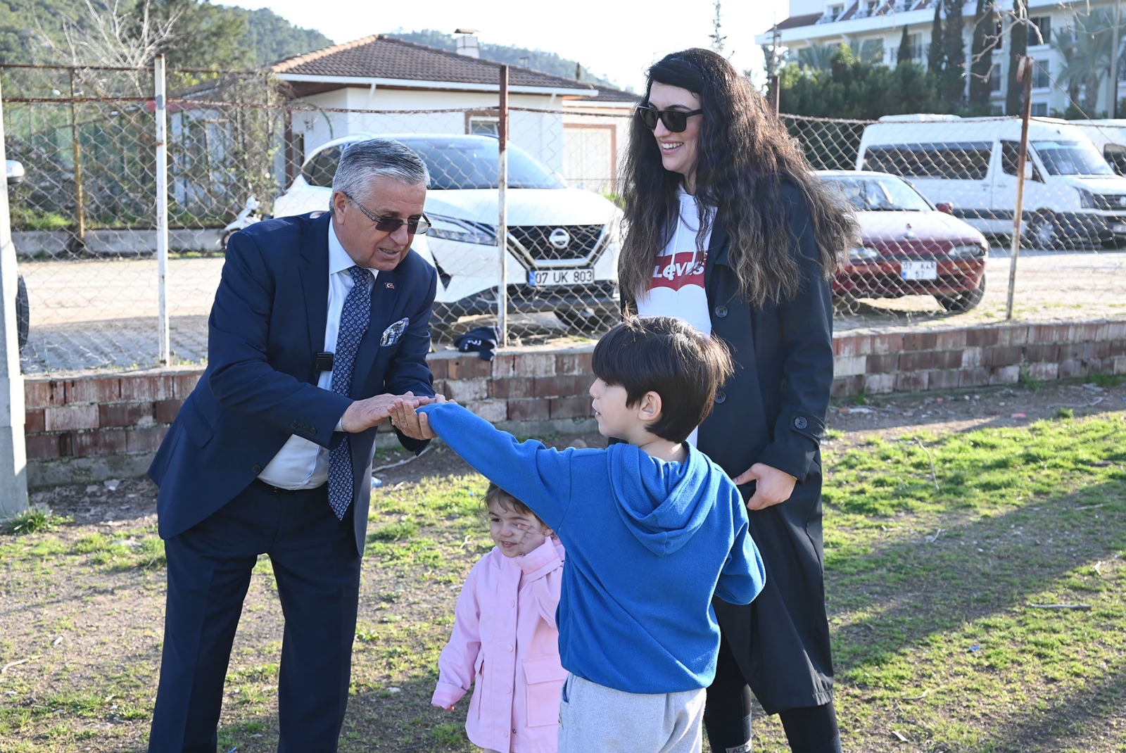 Kemer Ahmet Erkal Spor Kompleksi içerisinde çim alanda futbol eğitimlerine katılan farklı yaş gruplarındaki minik sporcuları ziyaret eden Başkan Topaloğlu, teknik sorumlu Melih Bildiş’ten çalışmalar hakkında bilgi aldı.