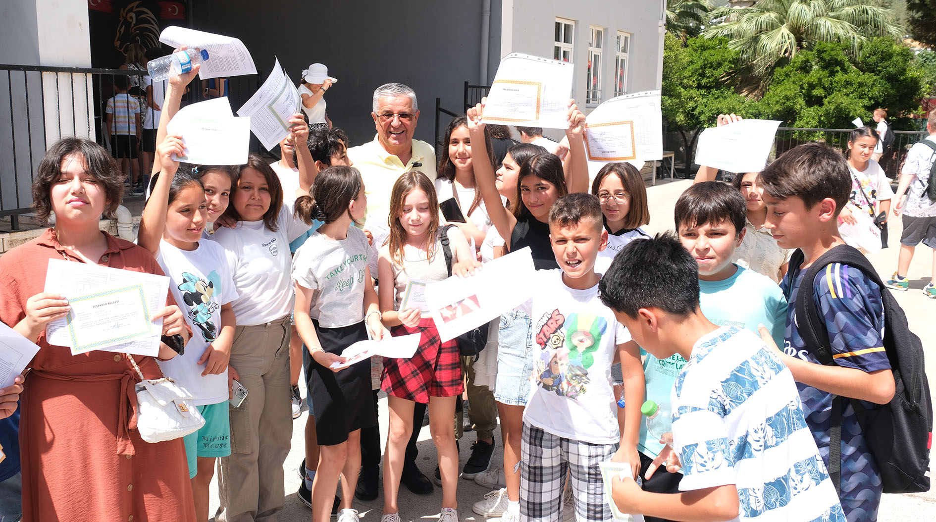 Kemer Belediye Başkanı Necati Topaloğlu, 2023-2024 eğitim ve öğretim yılının sona ermesi nedeniyle Arslanbucak Ortaokulu'nda düzenlenen karne törenine katıldı.