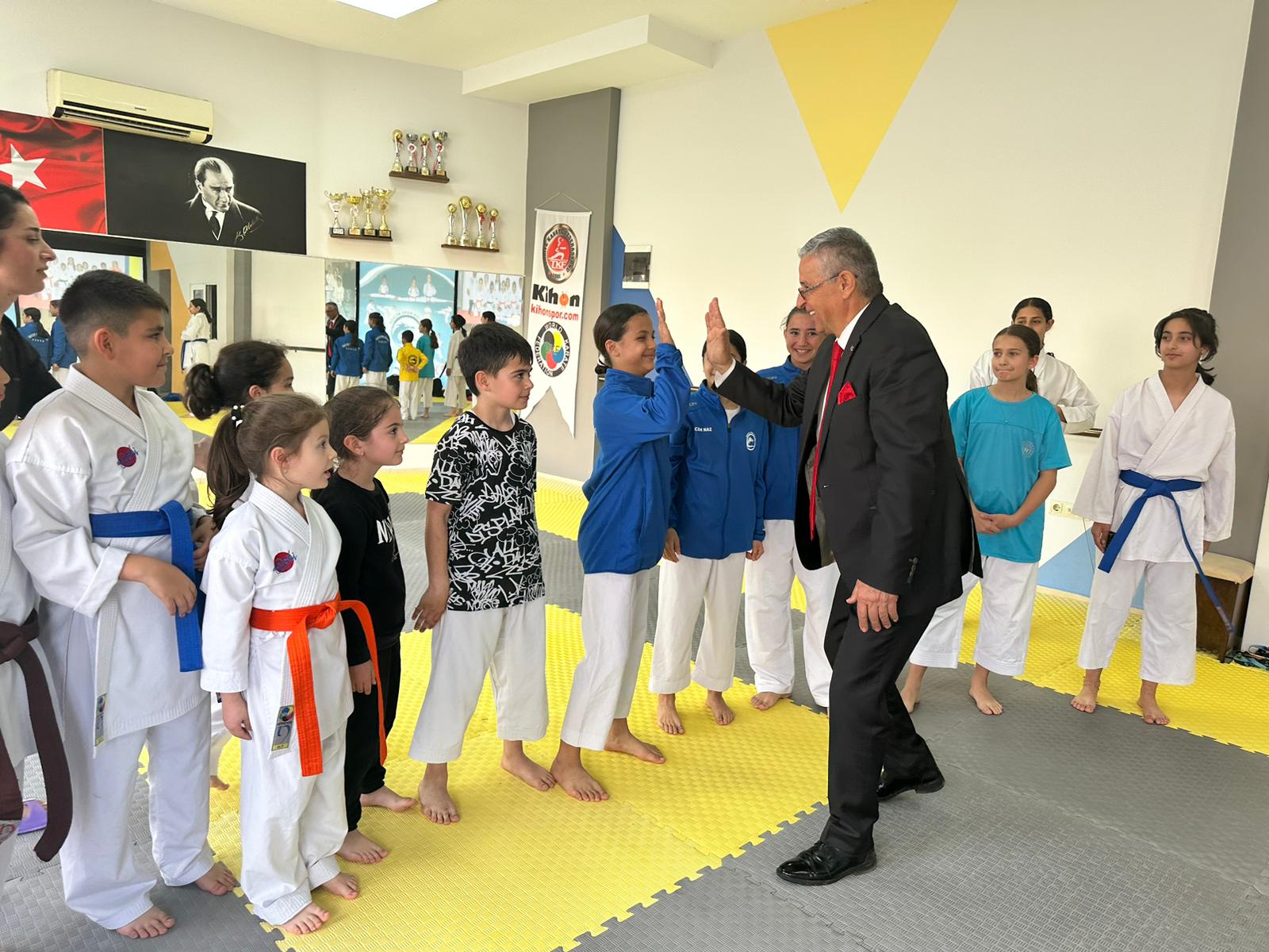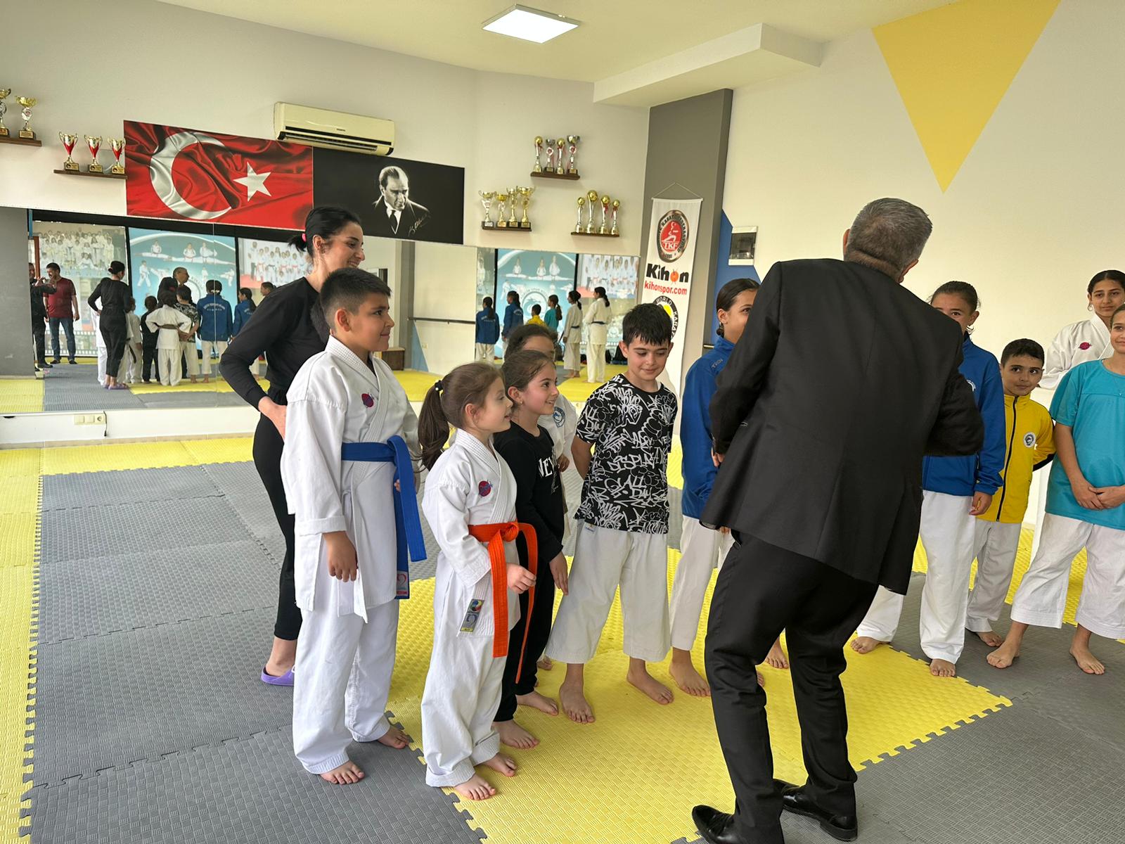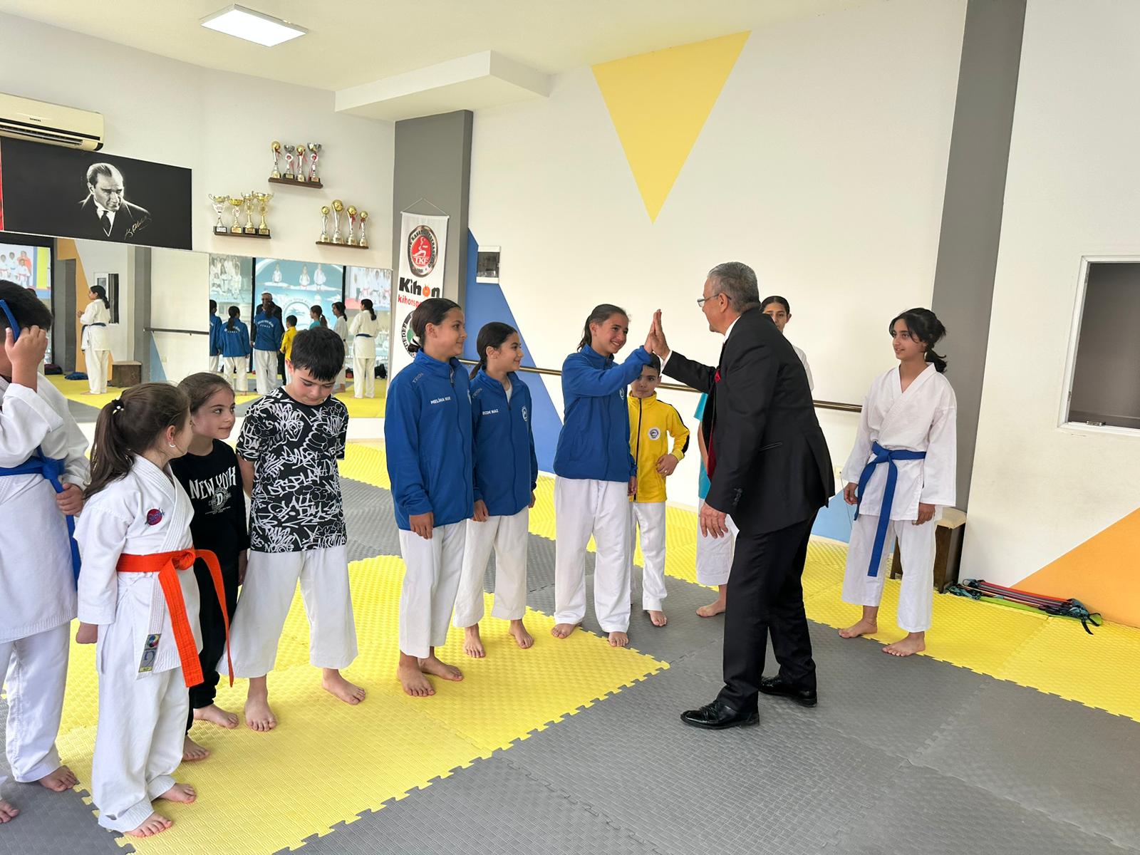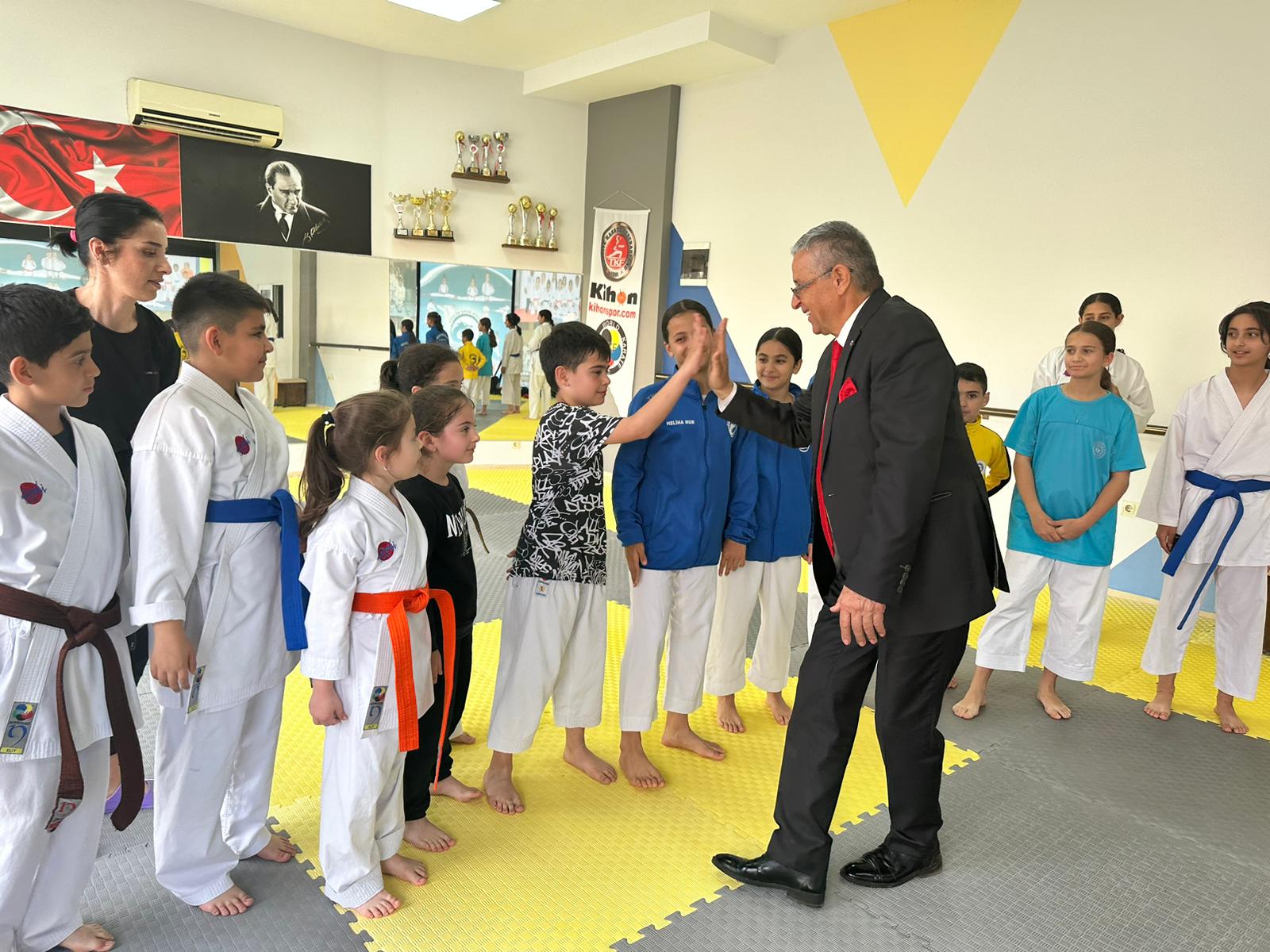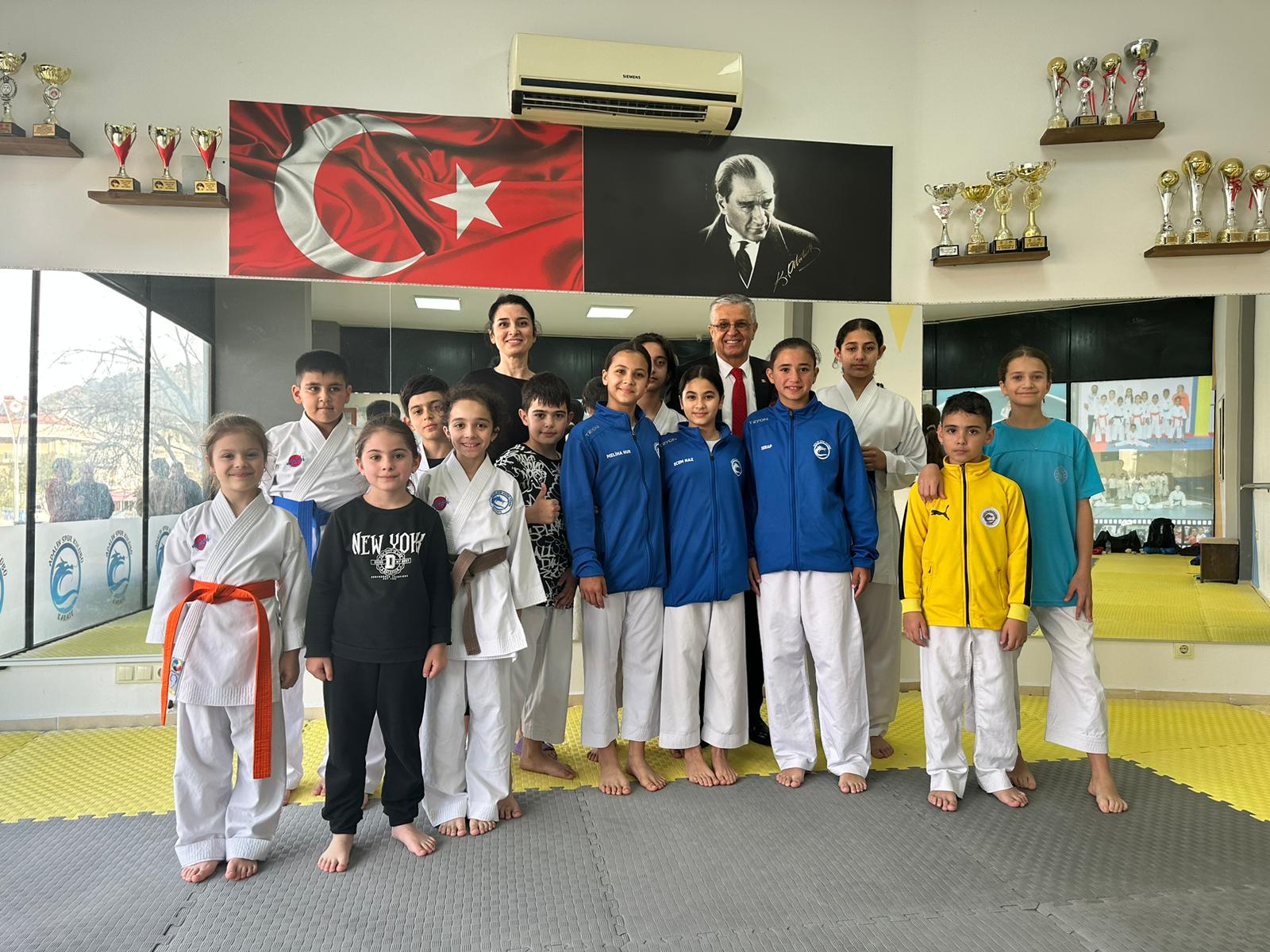 Kemer Belediye Başkanı Necati Topaloğlu, Adalin Spor Kulübü Derneği Spor Salonu’nda karatecileri ziyaret etti.