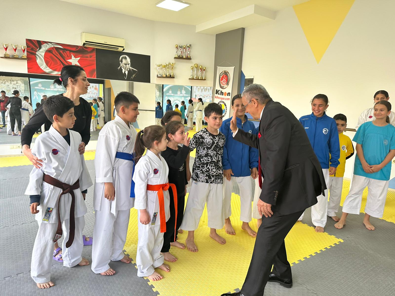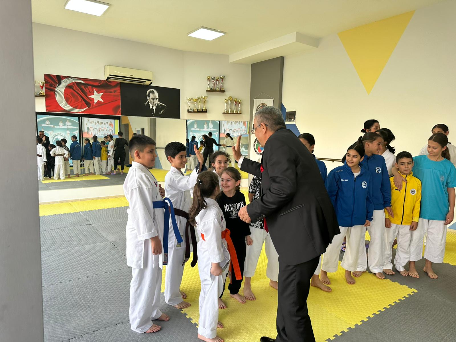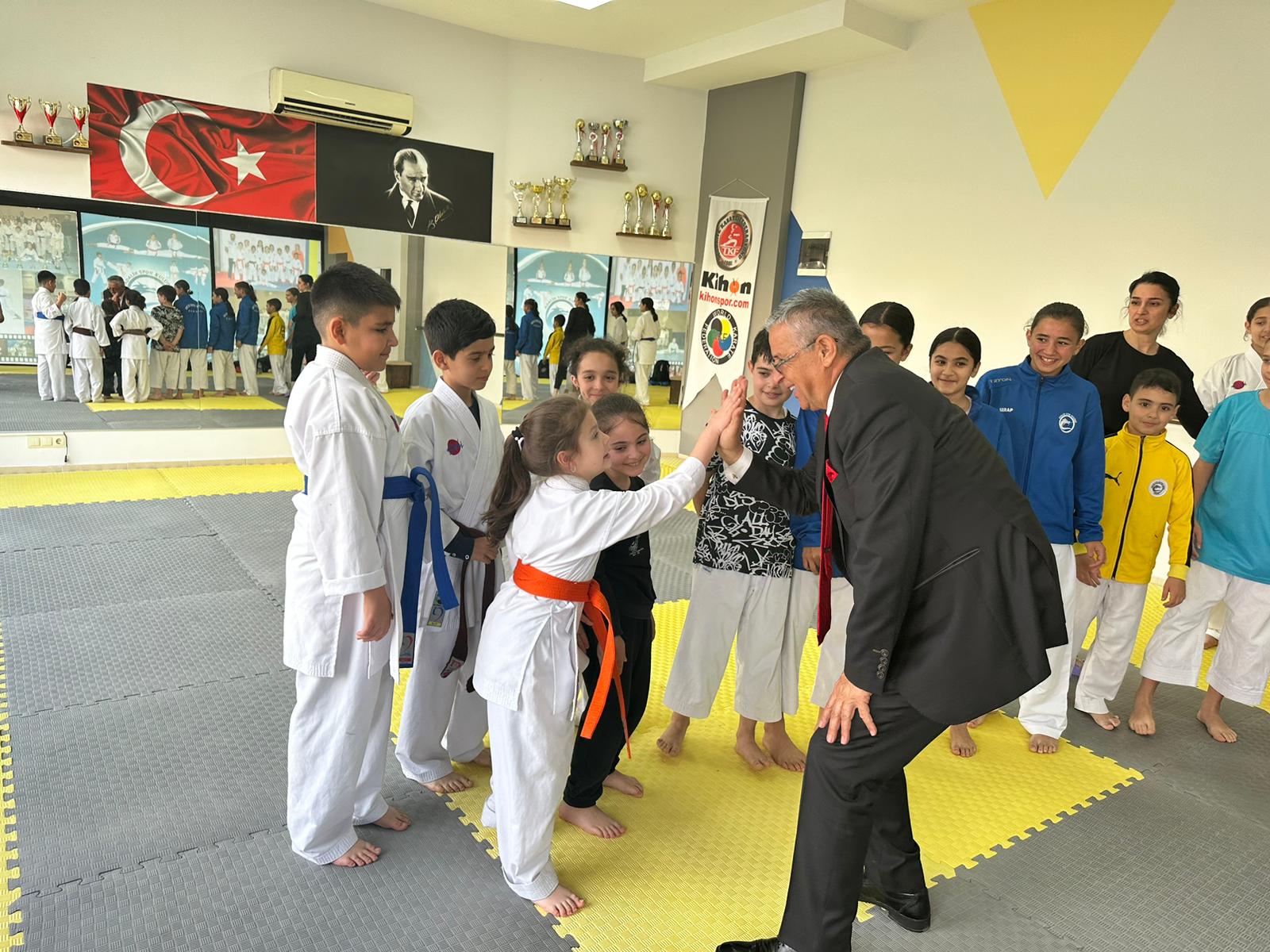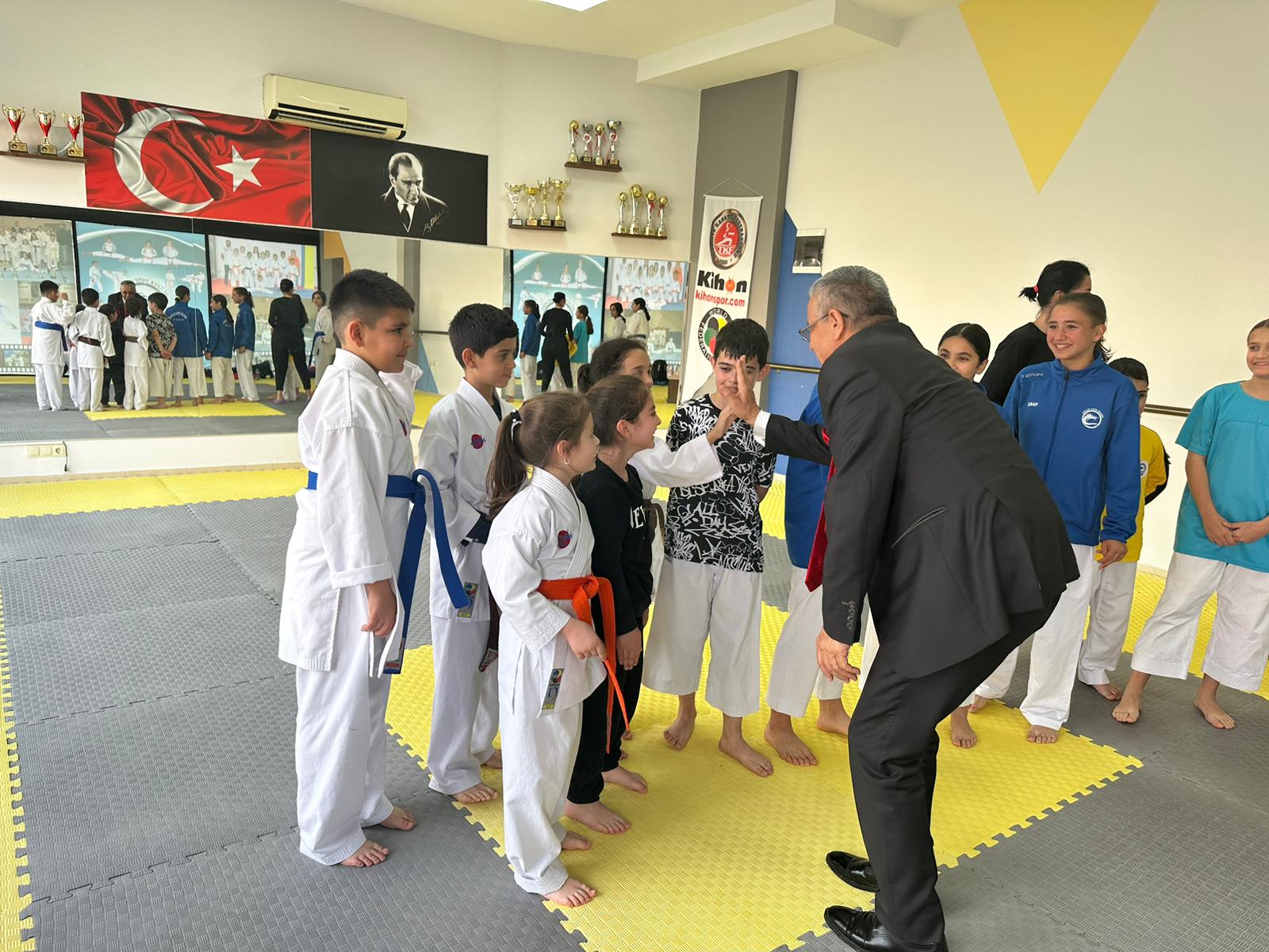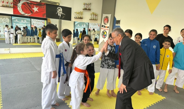 Kemer Belediye Başkanı Necati Topaloğlu, Adalin Spor Kulübü Derneği Spor Salonu’nda karatecileri ziyaret etti.