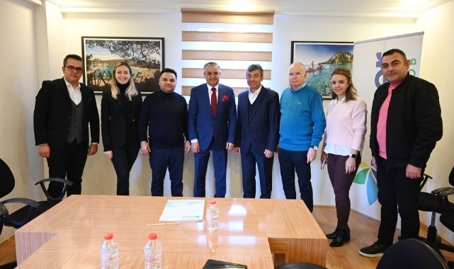 Kemer Belediye Başkanı Necati Topaloğlu, Kemer Turist Otelciler ve İşletmeciler Birliği (KETOB) Başkanı Dinçer Sarıkaya Kemer Turizmci ve İş Adamları Derneği (KEMİAD) Başkanı Rıza Sönmez’i ziyaret etti. KETOB ve KEMİAD Yönetim Kurulu Üyelerinin de yer aldığı ziyarette konuşan Belediye Başkanı Topaloğlu, 2024 yılı turizm sezonu hakkında fikir alışverişinde bulunduklarını söyledi. KETOB Başkanı Sarıkaya ve KEMİAD Başkanı Sönmez, ziyaretten duydukları memnuniyeti dile getirerek, Başkan Topaloğlu’na çalışmalarında başarılar diledi.