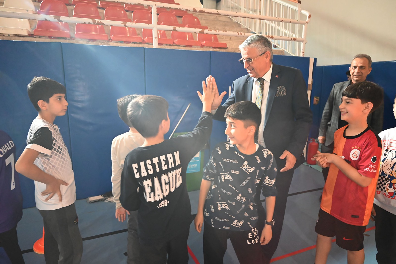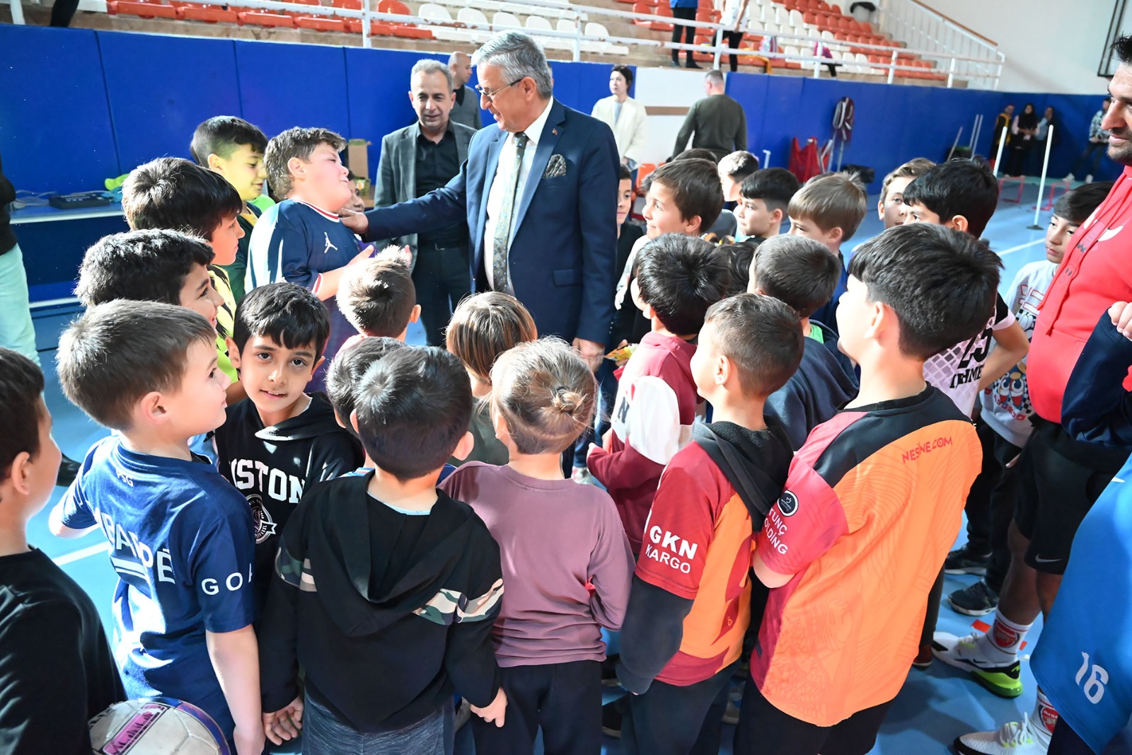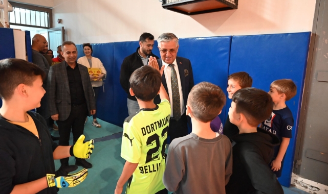 Kemer Belediye Başkanı Necati Topaloğlu, Spor Salonu'nda öğrencileri ziyaret etti