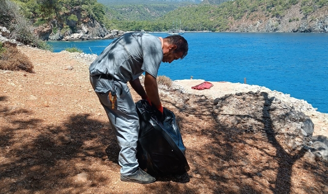 Kemer Belediyesi Temizlik İşleri Müdürlüğü ekipleri, ilçe genelinde koylarda temizlik çalışması yaptı.