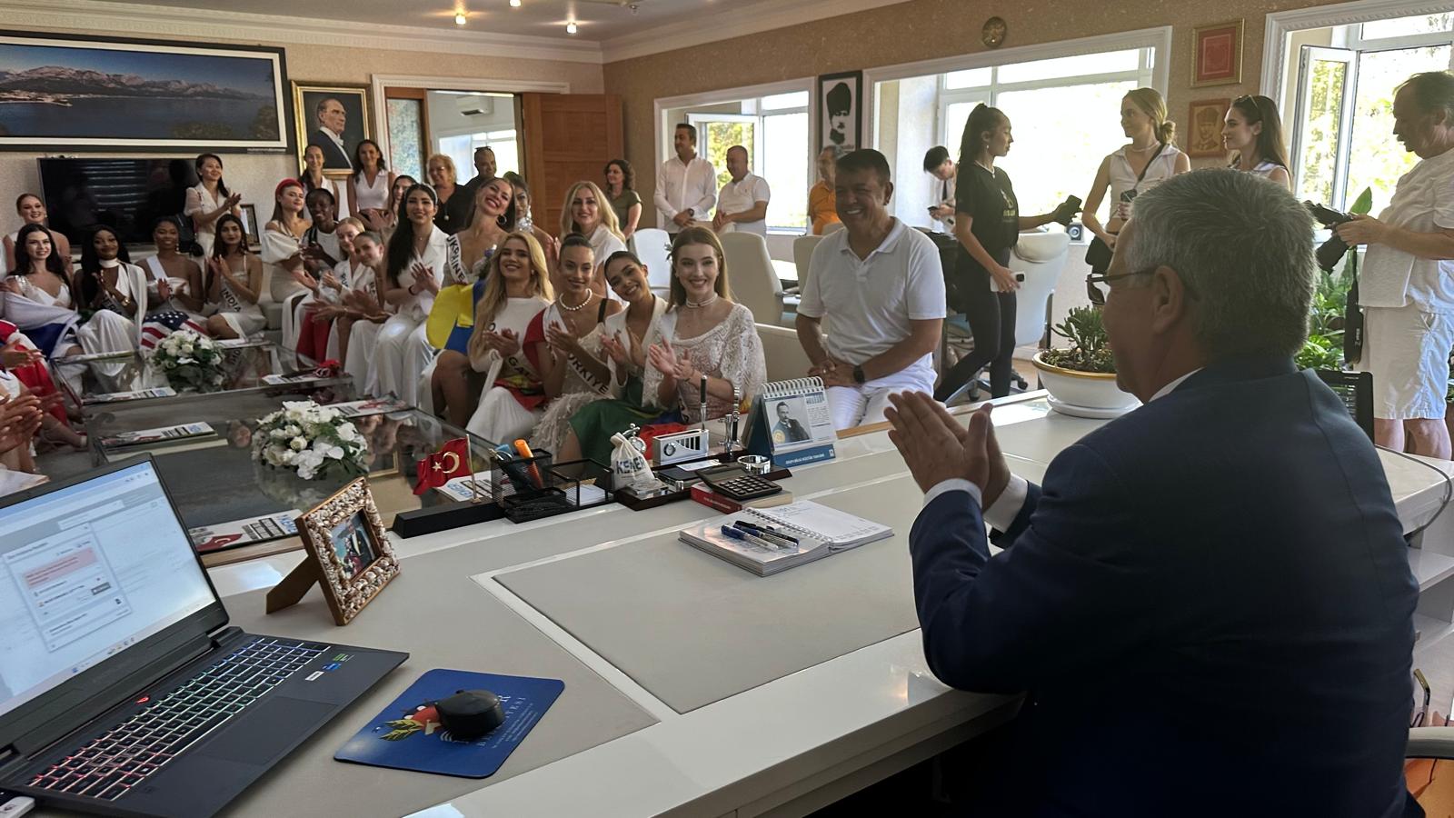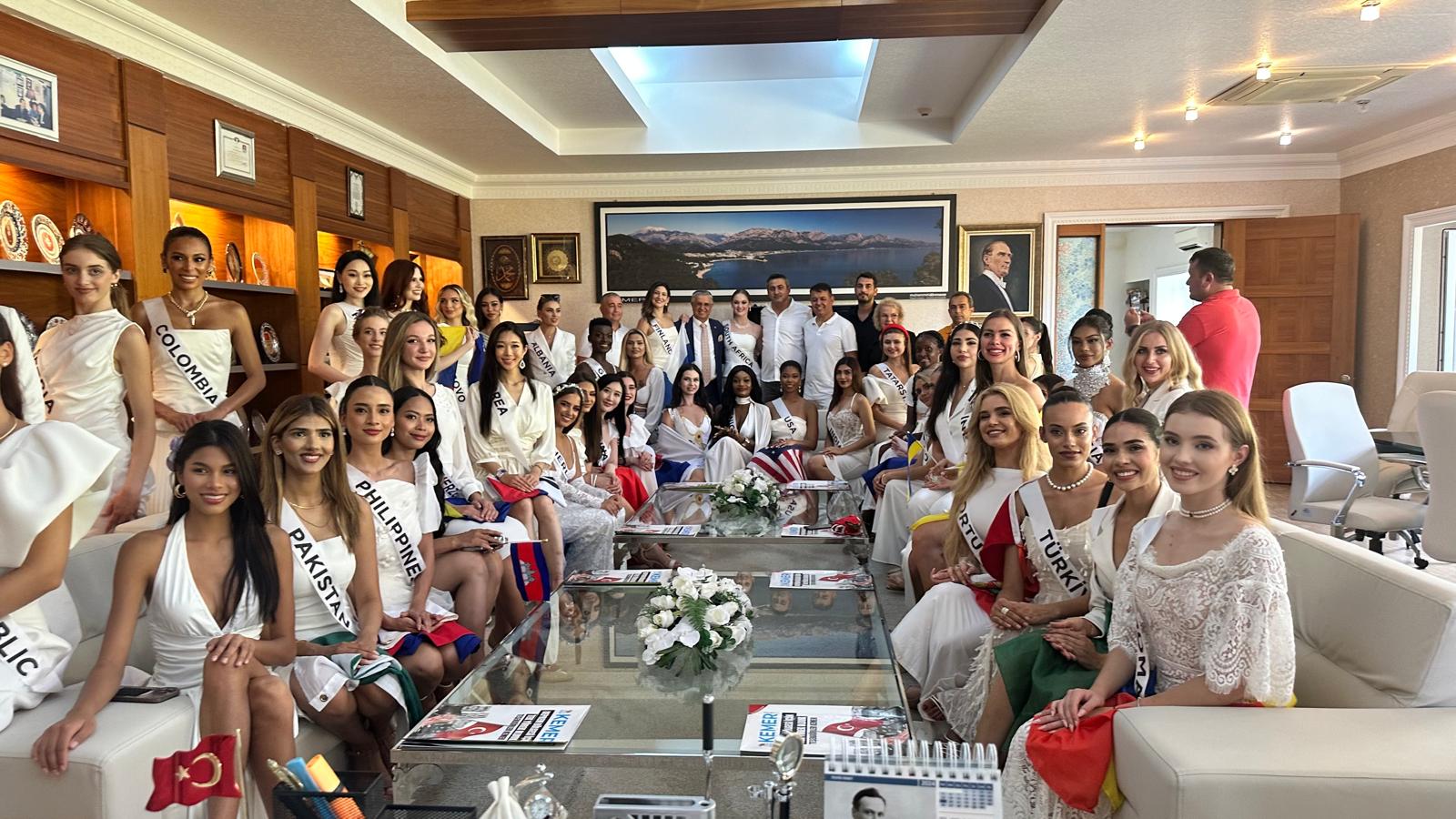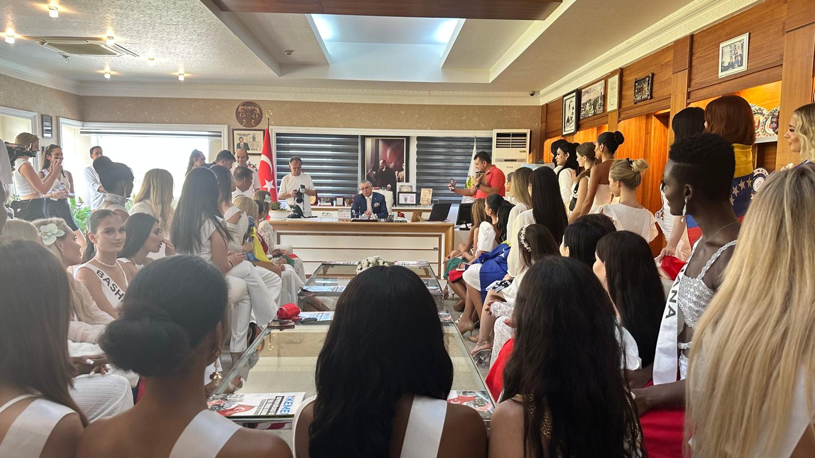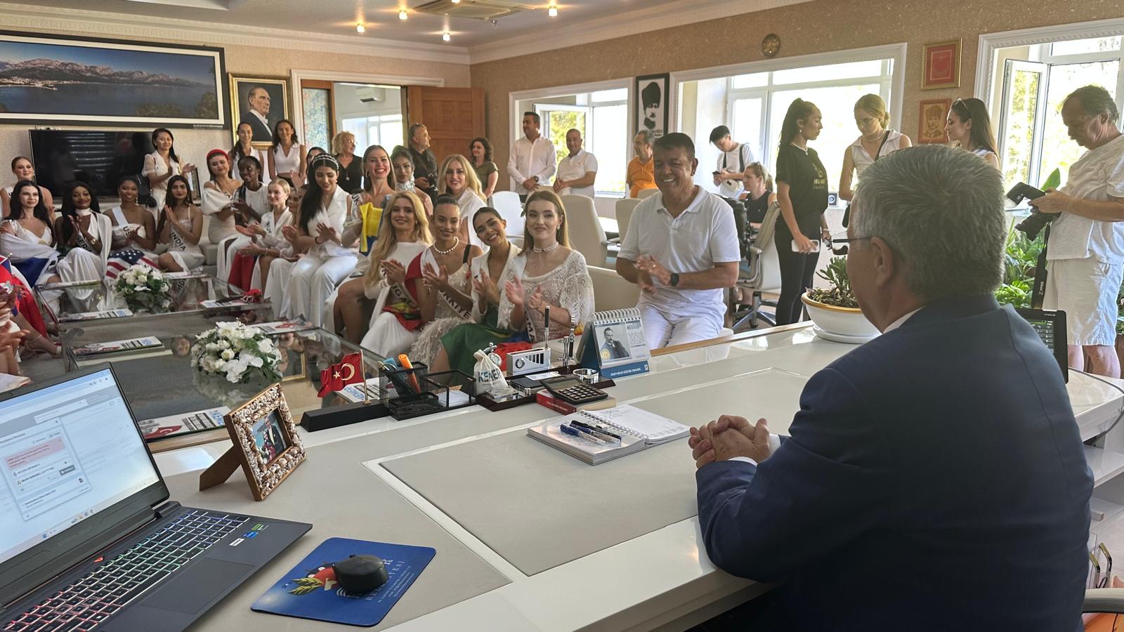 Bu yıl 18’incisi düzenlenen Miss Aura International Güzellik Yarışması için Kemer’e gelen güzeller, 43 ülkeden temsilcileriyle birlikte Kemer Belediye Başkanı Necati Topaloğlu’nu makamında ziyaret etti.