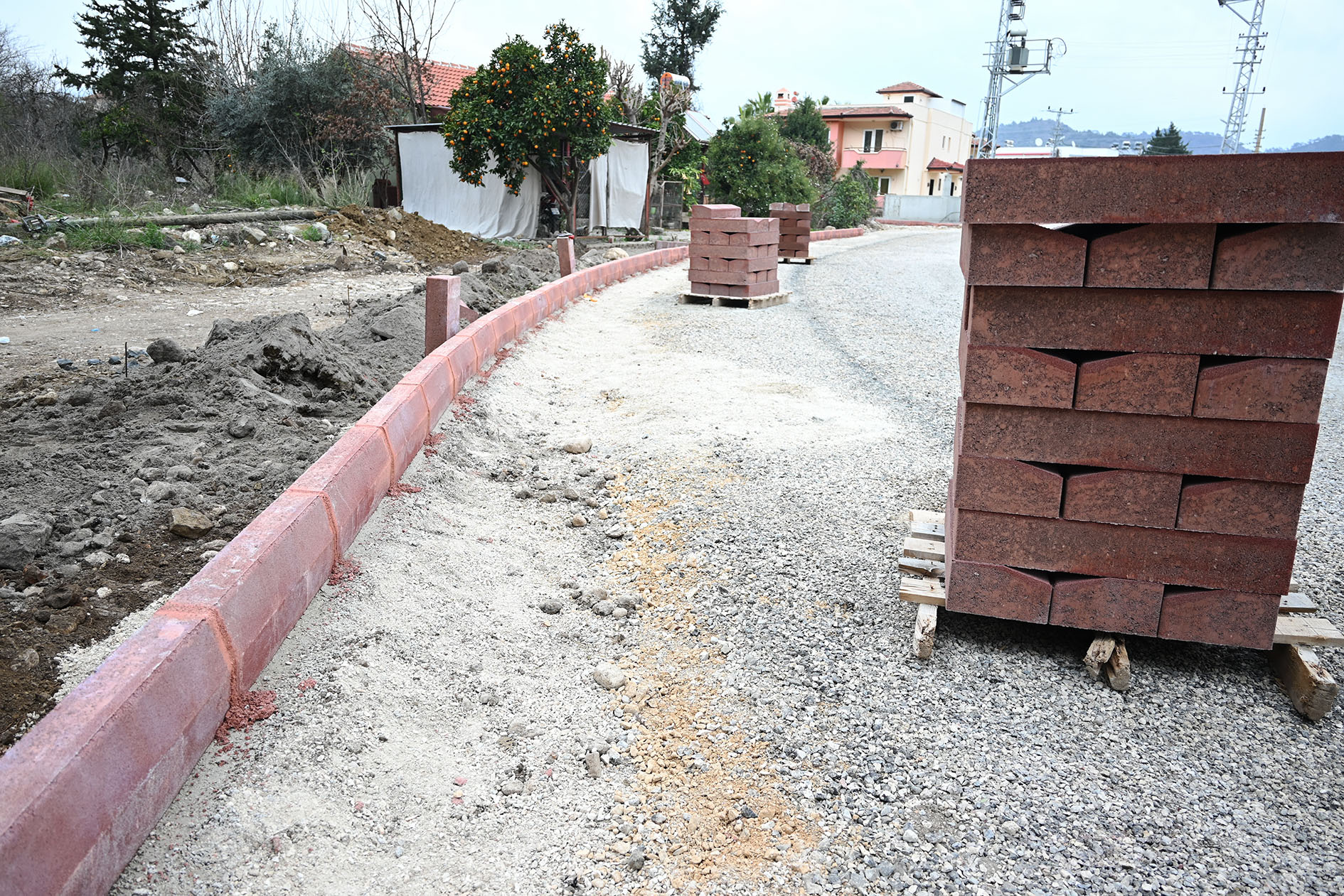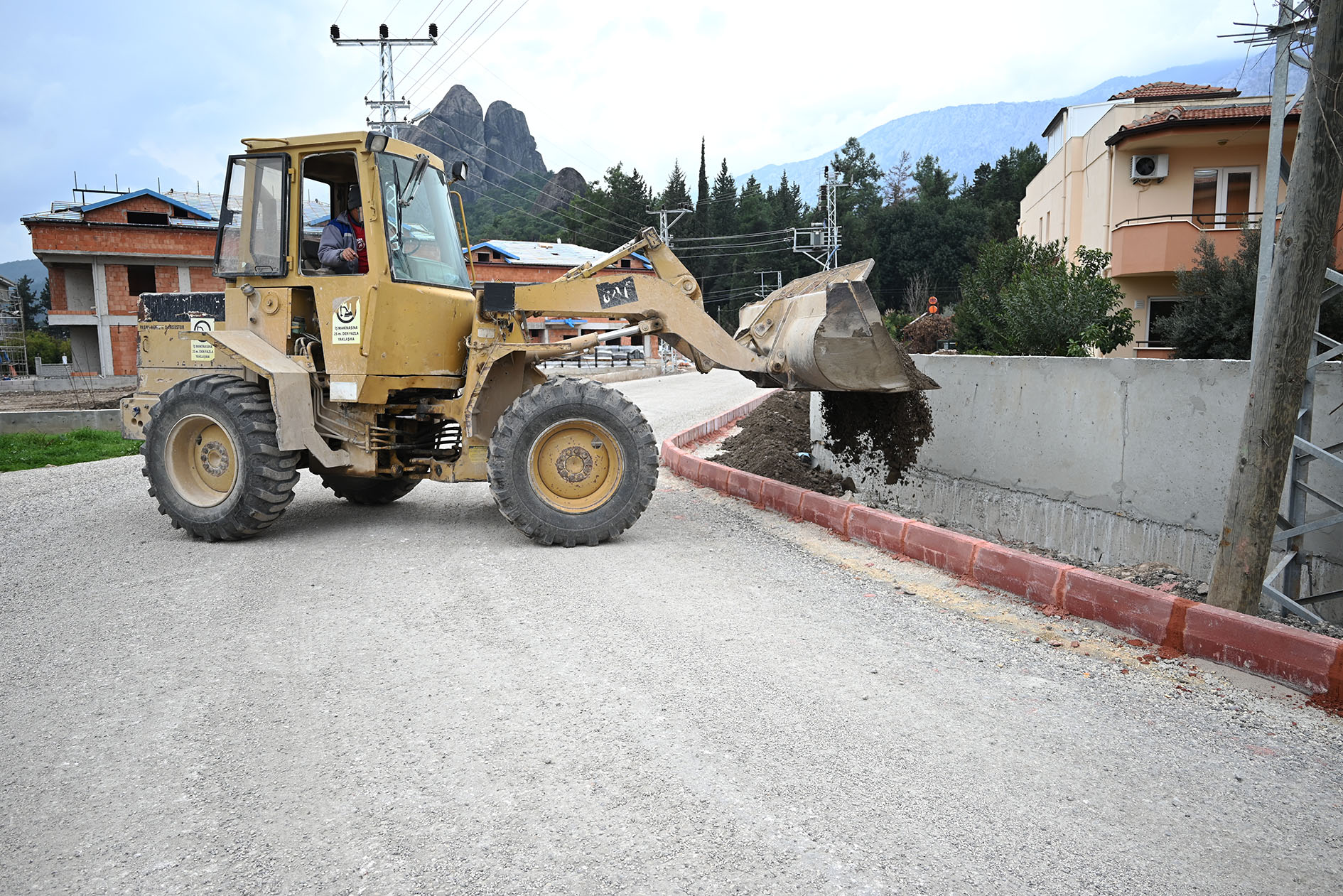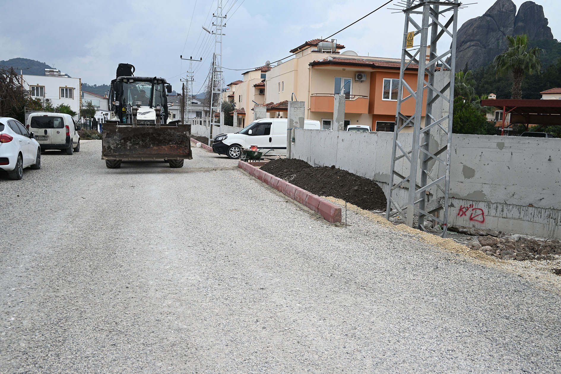 Kemer Belediyesi, Kuzdere Mahallesi Tekke Caddesi’nde kaldırım çalışmalarına başladı.