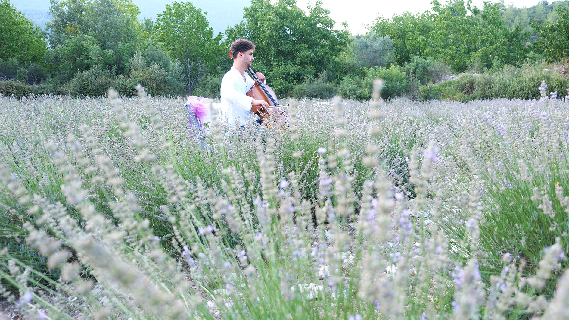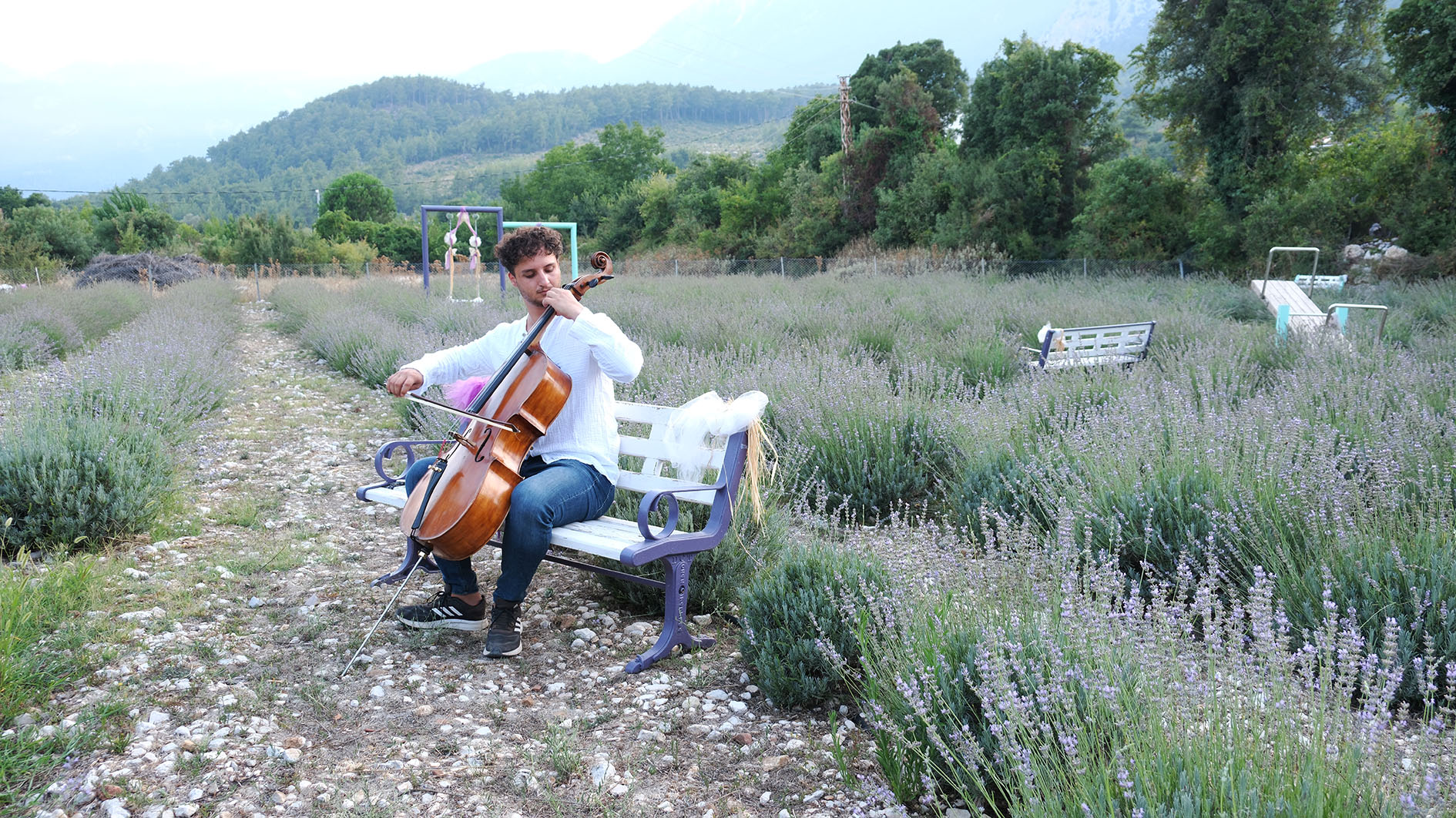 Çellist Emir Asil, Gedelme Yaylası’ndaki Kemer Belediyesi’ne ait lavanta bahçesinde lavanta tanıtım etkinlikleri kapsamında çello çaldı.