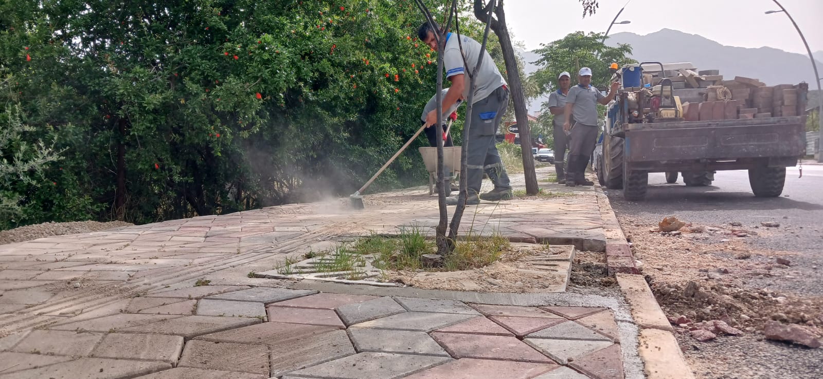 Kemer'de yol ve kaldırım çalışmaları