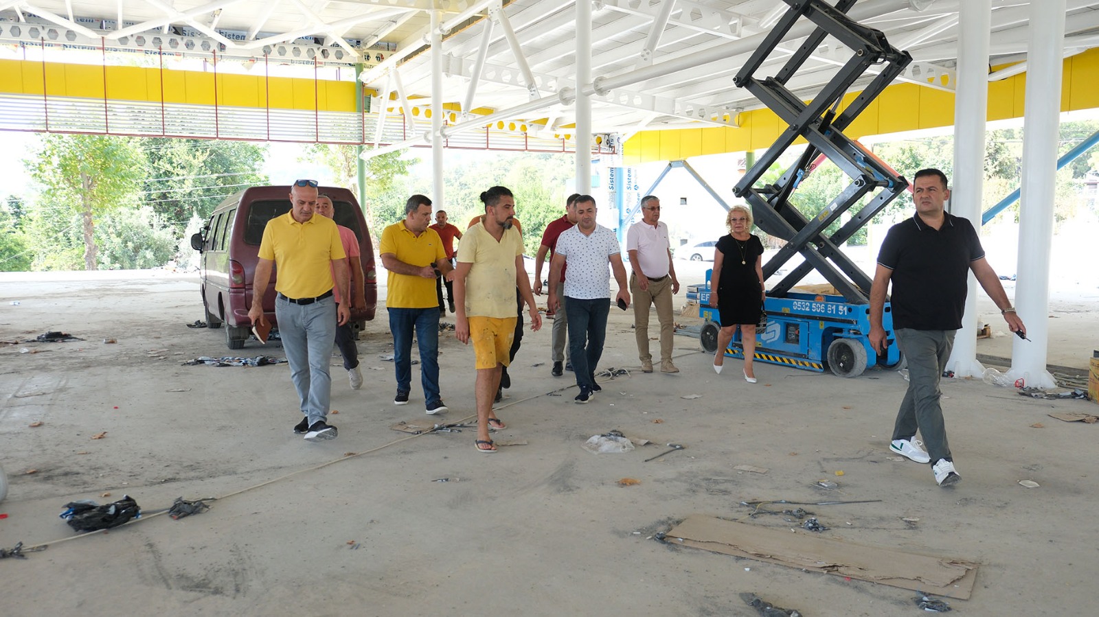 Kemer Belediye Başkanı Necati Topaloğlu, “Her Mahalleye Bir Kapalı Pazar Yeri” projesi kapsamında Göynük Mahallesi'nde yapımı hızla devam eden kapalı pazar yerinde incelemelerde bulundu.Başkan Topaloğlu’na, Kemer Belediye Başkan Yardımcısı Emin Gül, Kemer Belediye Meclis Üyeleri Mustafa Bilici, Semih Top, Ali Rıza Akar, Sema Özdemir, Mehmet Akın, ve Kemer Belediyesi Göynük Mahalle Sorumlusu Halit Canevi ile Beldibi Mahalle Sorumlusu Cumali Akdağ ve Fen İşleri Müdürü Aziz Balaman eşlik etti.Pazar alanında çalışan belediye personeliyle sohbet eden Başkan Topaloğlu ve beraberindekiler, ihaleyi alan firma sahibi Tunahan Kaya’dan çalışmalar hakkında bilgi aldı. Kaya, pazar alanındaki elektrik sistemlerinin tamamlanmak üzere olduğunu ve birkaç alüminyum kaplama ile ufak tefek boya işlerinin kaldığını belirterek, "İnşallah yaklaşık 10 gün içinde pazar yerini Kemer Belediyesi’ne teslim edeceğiz." dedi.Başkan Topaloğlu, yaptığı açıklamada, Göynük kapalı pazar yerinde ihaleyi alan firmanın var gücüyle çalıştığını ifade ederek, “Pazar yerimizde sona doğru yaklaşıyoruz. Teknik arıza nedeniyle pazar yerimizi zamanında teslim edemediler. Pazar yerinin altında iki tane dükkan var. Biri 610, diğeri 420 metrekare. 420 metrekare alanı taziye evi yapacağız. 610 metrekare olan alanı ise önümüzdeki günlerde ihaleye çıkaracağız.” şeklinde konuştu.