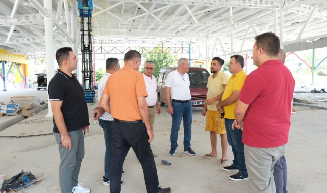 Kemer Belediye Başkanı Necati Topaloğlu, “Her Mahalleye Bir Kapalı Pazar Yeri” projesi kapsamında Göynük Mahallesi'nde yapımı hızla devam eden kapalı pazar yerinde incelemelerde bulundu.