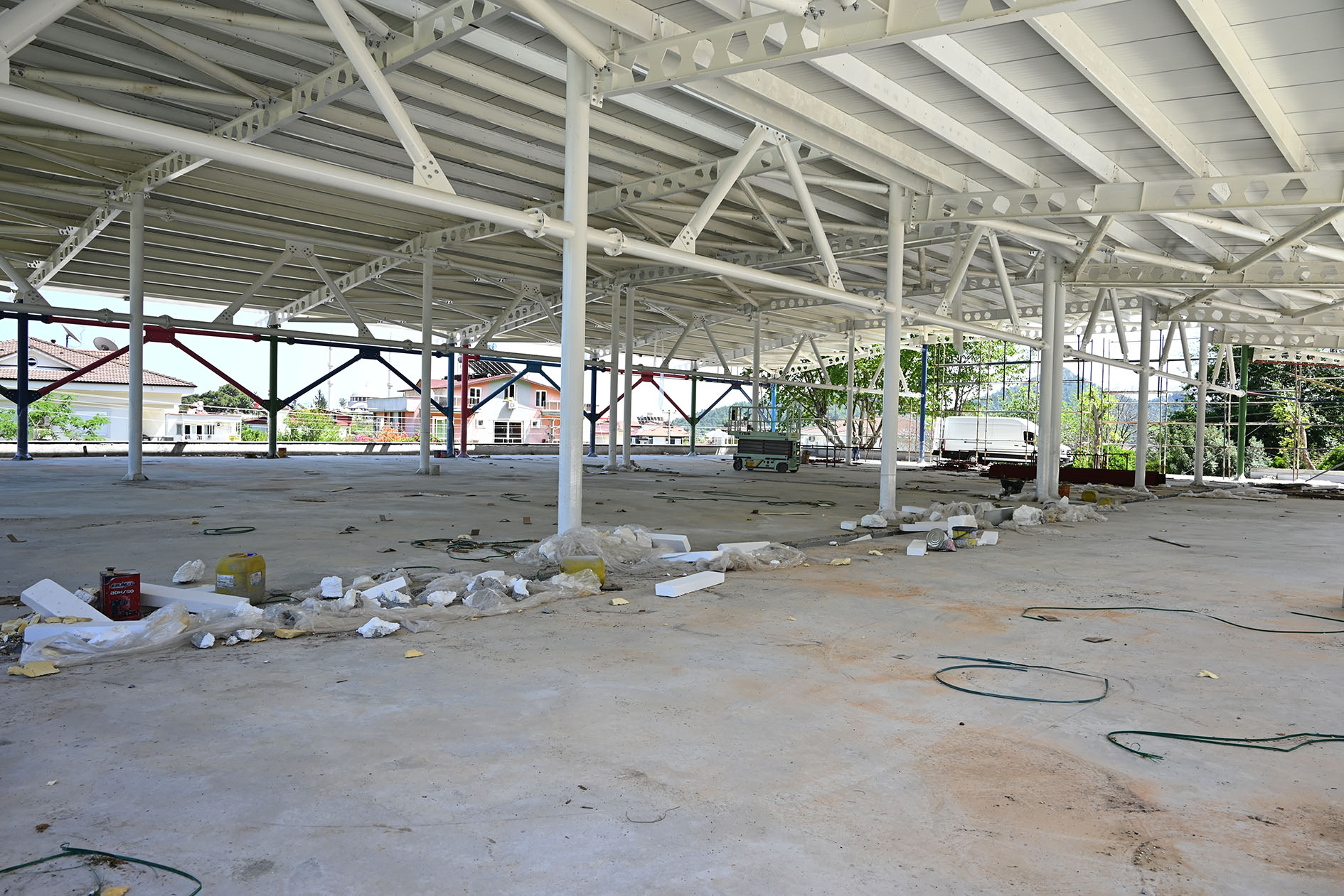 Kemer Belediye Başkanı Necati Topaloğlu'nun “Her mahalleye bir kapalı pazar yeri” projesi kapsamında Göynük Mahallesi'nde yapımı hızla devam eden Göynük Kapalı Pazar yerinde sona gelindi.