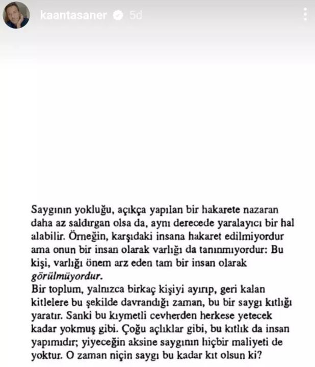 Dizinin afişinde yeni sezon oyuncularından sadece Şebnem Bozoklu'ya yer verildi. Giray rolünü oynayan Kaan Taşaner, afişin yayınlanmasının ardından Instagram hesabından şu sözlerle sitem etti: "Saygının yokluğu, açıkça yapılan bir hakarete nazaran az saldırgan olsa da aynı derece yaralayıcı bir hal alabilir. Örneğin, karşıdaki insana hakaret edilmiyordur ama onun bir insan olarak varlığı da tanınmıyordur Bu kişi, varlığı önem arz eden tam bir insan olarak görülmüyordur. Bir toplum yalnızca birkaç kişiyi ayırıp geri kalan kitlelere bu şekilde davrandığı zaman bu bir saygı kıtlığı yaratır. Sanki bu kıymetli cevherden herkese yetecek kadar yokmuş gibi. Çoğu açlıklar gibi; bu kıtlık da insan yapımıdır, yiyeceğin aksine saygının hiçbir maliyeti de yoktur. O zaman niçin saygı bu kadar kıt olsun ki?" Kaan Taşaner sitem dolu paylaşımın ardından Instagram hesabını sildi.