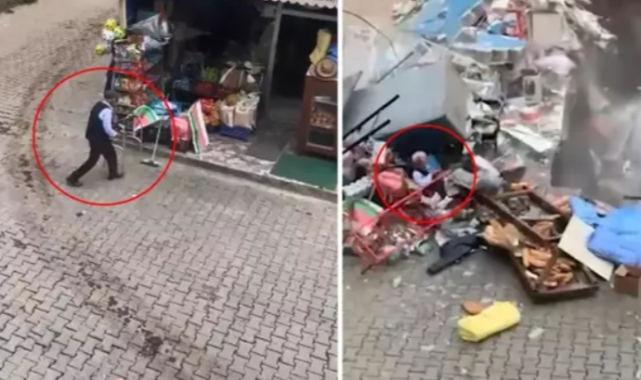 Çökmeden saniyeler önce Ziya Tatar isimli 91 yaşındaki yaşlı adam bakkala girince bina yaşlı adamın üzerine çöktü. Şans eseri yaşlı adam kazayı ufak sıyrıklarla atlatırken, yaşanan olay cep telefonu kamerasına saniye saniye yansıdı.Artvin'in Kemalpaşa ilçe çarşı mahallesinde öğlen saatlerinde meydana gelen olayda yanındaki konut inşaatı temel kazı çalışması sırasında Şaban Yılmaz'a ait mahalle bakkalında çökme tehlikesi yaşandı. Tehlikeyi fark eden bakkal sahibi işletmesini terk edip dışarda beklemeye başladı. Bu sırada 91 yaşındaki Ziya Tatar isimli yaşlı adam bakkala girmeye yöneldi. Etraftakilerin uyarılarına aldırış etmeyince 'Paşalı Tatar' isimli bir vatandaş koşarak yaşlı adamı bakkaldan çıkartmaya çalışırken bakkalın bulunduğu tek katlı bina yıkıldı.ŞANS ESERİ KURTULDUPaşalı Tatar saniyelerle kurtulurken 91 yaşındaki Ziya Tatar ise çöken bakkalın altında kaldı. Yaşlı adam şans eseri olayı küçük sıyrıklarla atlatılırken, görüntüler ise saniye saniye cep telefonu kamerasına yansıdı.