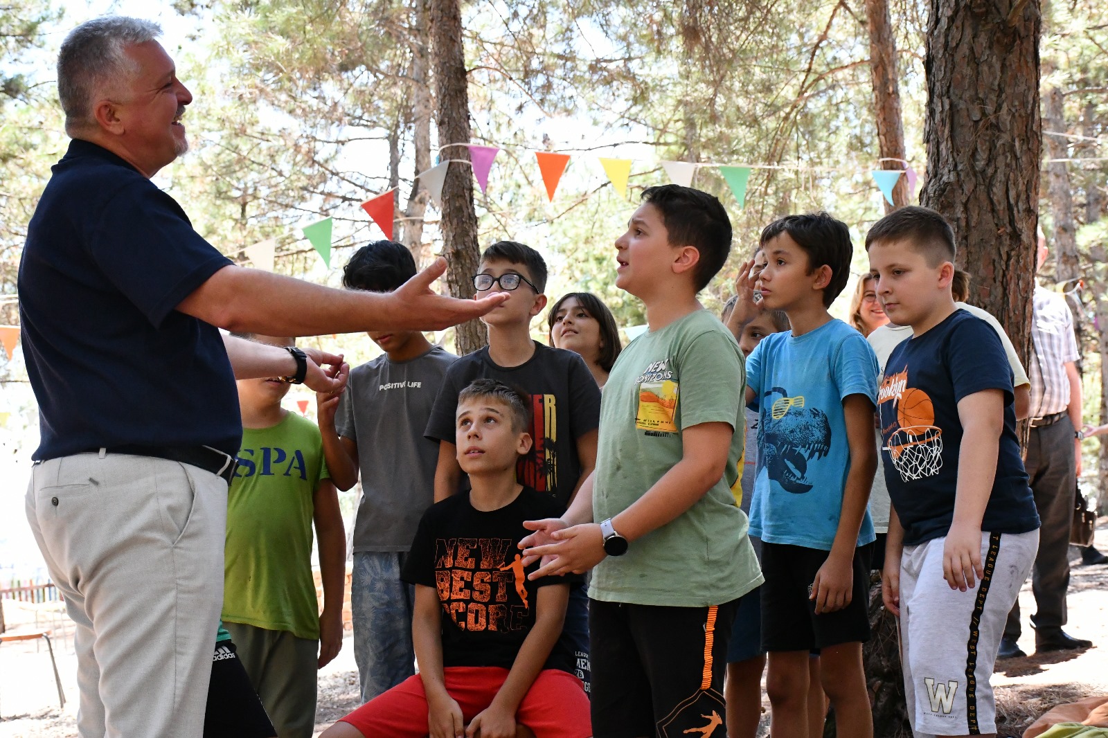 Lüleburgaz Belediye Başkanı Dr. Murat Gerenli de Kent Ormanı’ndaki Yıldız Yaz Kampı’nda çocuklarla bir araya gelerek sohbet etti.Belediye Başkanı Gerenli’ye Yıldız Yaz Kampı’ndan memnuniyetleri ileten çocuklar, bir sonraki sene de Yıldız Yaz Kampı’na katılmak için heyecanlandıklarını belirttiler.Belediye Başkanı Dr. Murat Gerenli’ye belediye başkan yardımcıları Derya Aktan, Kemal Pektaş, Gökhan Kaya Atay ve Ceyhun Akgöl de eşlik etti.