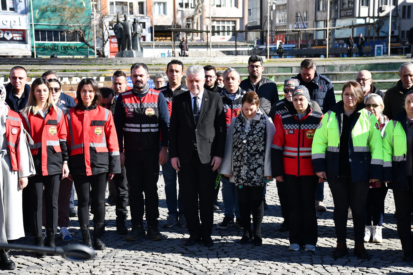 Kongre Meydanı’nda düzenlenen törende depremde hayatını kaybeden vatandaşlar için saygı duruşunda bulunuldu.Meydanda kurulan çadırlarda ise Lüleburgaz’daki sivil toplum kuruluşları tarafından afetler ile ilgili bilinçlendirme ve farkındalık çalışmaları gerçekleştirildi, ‘Seni Unutmadım Arkadaşım’ sloganıyla düzenlenen kampanya kapsamında vatandaşlar depremzede çocuklara ulaştırılmak üzere oyuncak ve kırtasiye malzemesi getirdi.Törene Lüleburgaz Belediye Başkanı Dr. Murat Gerenli, eşi Aysu Yetim Gerenli, başkan yardımcıları Leyla Güncer, Kemal Pektaş, Bakut Arama Kurtarma Derneği Kırklareli İl Temsilciliği, Lüleburgaz Doğal Afet Arama Kurtarma, Trakya Afet Gönüllüleri Doğa Koruma Derneği, Afet ve Acil Haberleşme TRAC Lüleburgaz ve Türk Kızılay Derneği Lüleburgaz Şubesi üyeleri katıldı.“İLK İŞİMİZ AFETLERE HAZIR OLMAK”Belediye Başkanı Gerenli, törende yaptığı konuşmada afetlere hazırlıkta en önemli adımın bilinçlenme olduğunu belirterek; “Bundan tam bir yıl önce sabah çok büyük bir acıyla uyandık, yüzyılın felaketi. Kahramanmaraş depremleri hepimizi derinden sarstı. Ben üç tane canımı, bir çalışma arkadaşımı bu depremde kaybettim.Göçük altından aylar sonra çıkarıldı, kimsesizler mezarlığında bulabildik onları. 53 binden fazla canımızı kaybettik, yüz binlerce canımız yaralandı, evsiz, barksız, yurtsuz kaldılar. Afetler maalesef Türkiye’nin gerçeği. Bunun bilincindeyiz ve bununla beraber Lüleburgaz Belediyesi olarak bu yılı Lüleburgaz’da ‘Afet ve Koordinasyon Yılı’ olarak ilan ettik.Afetlerle ilgili en önemli şey bilinçli olmak ve afetlere hazırlıklı olmak. Hepinizin bildiği gibi, binalar öldürüyor depremlerde. 12 Kasım 1999 Düzce depreminde gönüllü hekim olarak 8 saat sonra sahaya gittiğimde kaybettiğimiz canların yanında, göçük altından çıkanların durumunu gördükçe içim parçalandı.O nedenle ilk işimiz afetlere hazır olmak. Güçlü binalarda, dayanıklı binalarda yaşamayı öncelikle bilmeli ve bilinçlenmeliyiz” ifadelerini kullandı.“TARTIŞMALAR BENİ DEHŞETE DÜŞÜRDÜ”“Aklın ve bilimin rehberliğinde depremlere hazırlıklı olacağız” diyen Gerenli; “Lüleburgaz kamuoyunun Lüleburgaz Belediyesi hizmet binasının boşaltılması ile ilgili konuştuğu konular, yaptığı tartışmalar beni dehşete ve büyük bir kaygıya düşürdü. Defalarca konusunda uzman ekiplerle yaptığımız çalışmalar sonucunda binamızın riskli olduğunu, depreme dayanıksız ve güçlendirilemez olduğunu belirledik.Tek bir Lüleburgazlı hemşerimizin burnunun kanaması benim sorumluluğumdadır. O yüzden binaları sağlıklı yapacağız. Hemen arkasından Mercan Çarşısı konuşuldu. Yıllar öncesinden yıkım kararı alınan yerle ilgili tartışmalar başladı.Göçük altından kurtarmak değil, insanları göçük altında kalmayacak, sağlam binalarda yaşatmak zorundayız. En büyük sorumluluğumuz bu. Sel felaketi yaşadık, o insanların orada yaşamasını engellememiz gerekiyor. Bunun için çalışmaya devam edeceğiz. Önce bu bilincin yerleşmesi için mücadele edeceğiz” diye konuştu.YENİ BELEDİYE BİNASINI KAMUOYU İLE PAYLAŞTIBaşkan Gerenli, “Bina Deprem Risk Analizi” sonucunda depreme dayanıksız olduğu tespit edilen Lüleburgaz Belediyesi hizmet binasının yerine yapılması planlanan yeni belediye binası ile ilgili de ilk kez konuştu.Projenin görsellerini kamuoyu ile paylaşan Gerenli; “Şimdi Lüleburgaz’da Lüleburgaz’a yakışan, Lüleburgaz halkının sosyal ve ekonomik hayatına daha fazla katkı sağlayacak, kendi enerjisini üreten, gri suyunu kullanabilen, üzerinde terasların olduğu, kent siluetini bozmayacak, modern bir yapı kazandıracağız.Lüleburgaz’da 40 adet afet toplanma noktasının hepsini kamuoyuyla paylaşıyoruz. Afet koordinasyon merkezimiz itfaiye binamızda, yedekleriyle beraber hazır. Gönüllülerimiz hazır, hep beraber gerekeni yapacağız. Ama önce bu bilinci topluma kazandırmak zorundayız.Maalesef canlarımızı yitiriyoruz, daha aydınlık bir gelecek, daha güvenli bir ülke ve kent için hepinizi göreve davet ediyorum” dedi.Konuşmaların ardından Lüleburgaz Belediye Başkanı Dr. Murat Gerenli depremde hayatını kaybedenler anısına karanfil bıraktı.